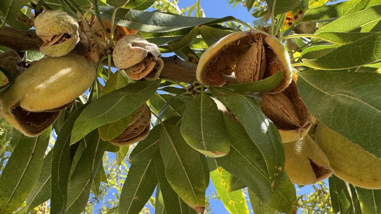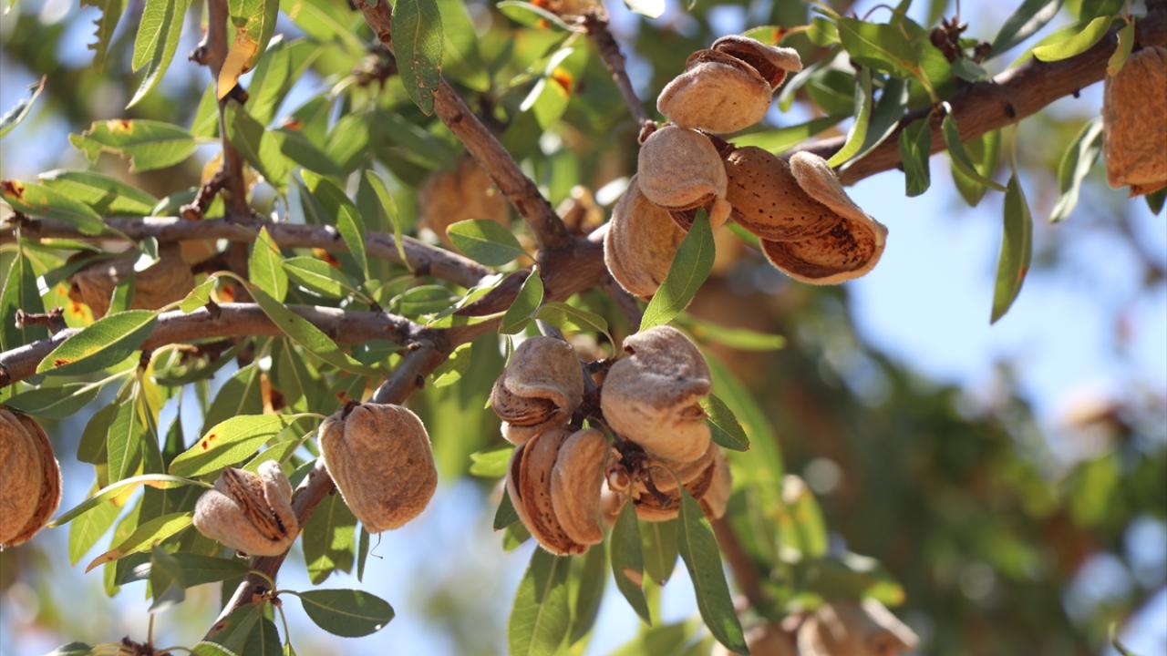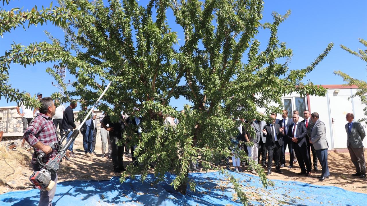 Daha sonra yaklaşık 32 bin dekar alanda bulunan 472 bin ağaçta yetiştirilen bademin hasadına başlandı.