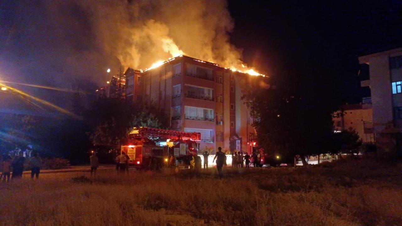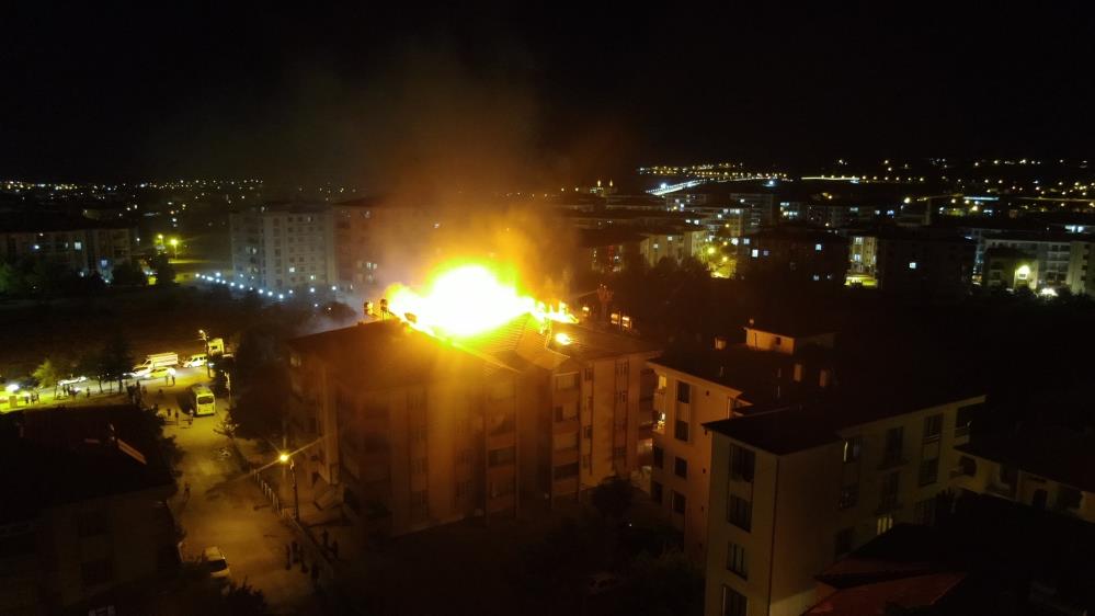 Rüzgarın etkisiyle kısa sürede büyüyen yangın bitişikteki apartmanın çatısına da sıçradı.