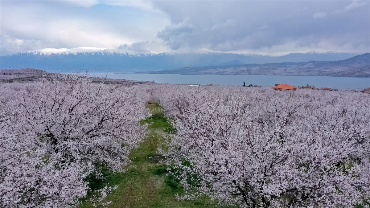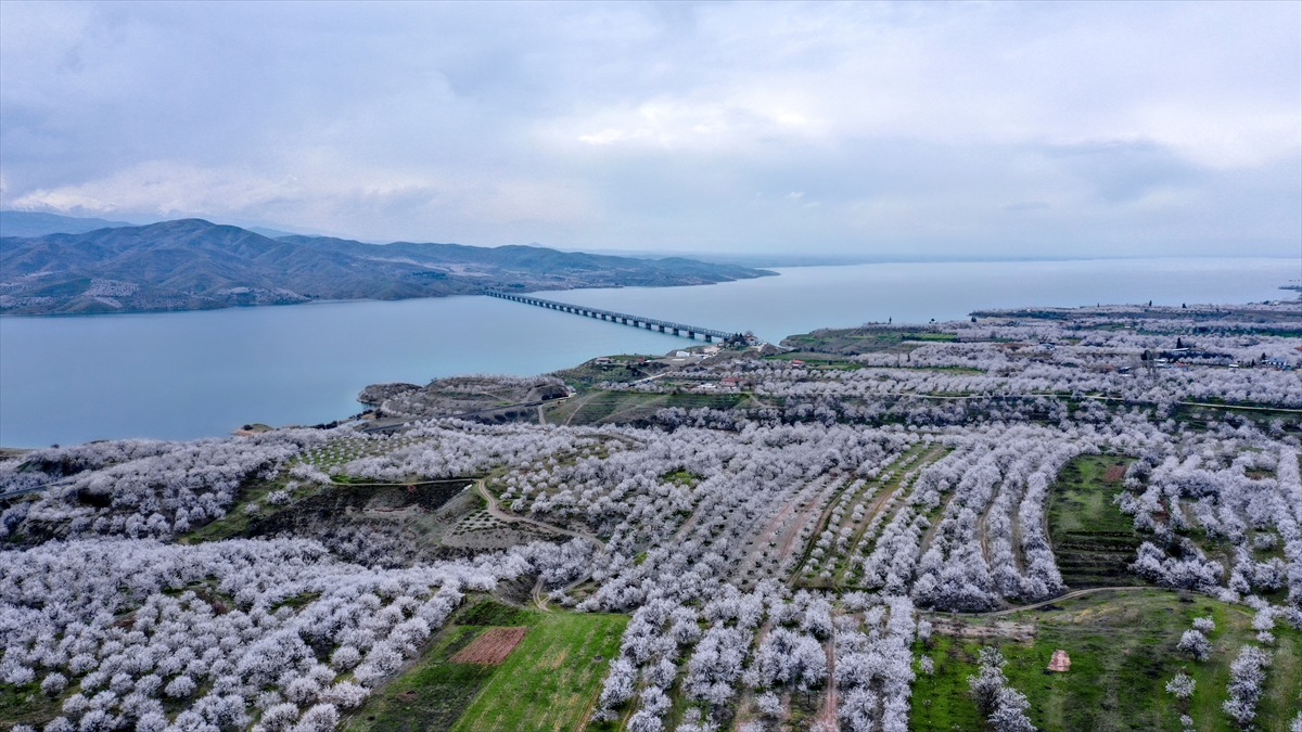 Elazığ`da en çok üretimin yapıldığı Baskil ilçesinde Karakaya Baraj Gölü çevresinde yer alan kayısı ağaçları ilkbaharın gelmesiyle çiçek açtı. Bahçelere giren üreticiler ağaçların bakımını yapıyor.