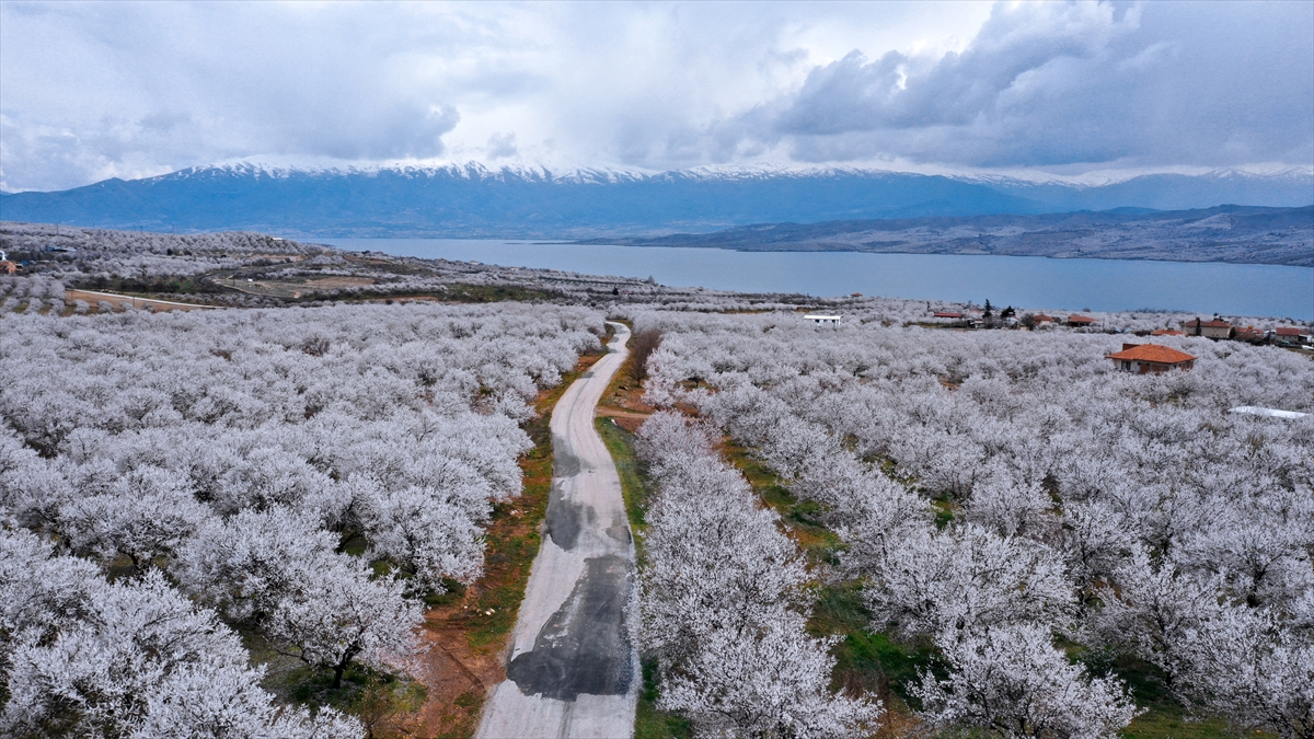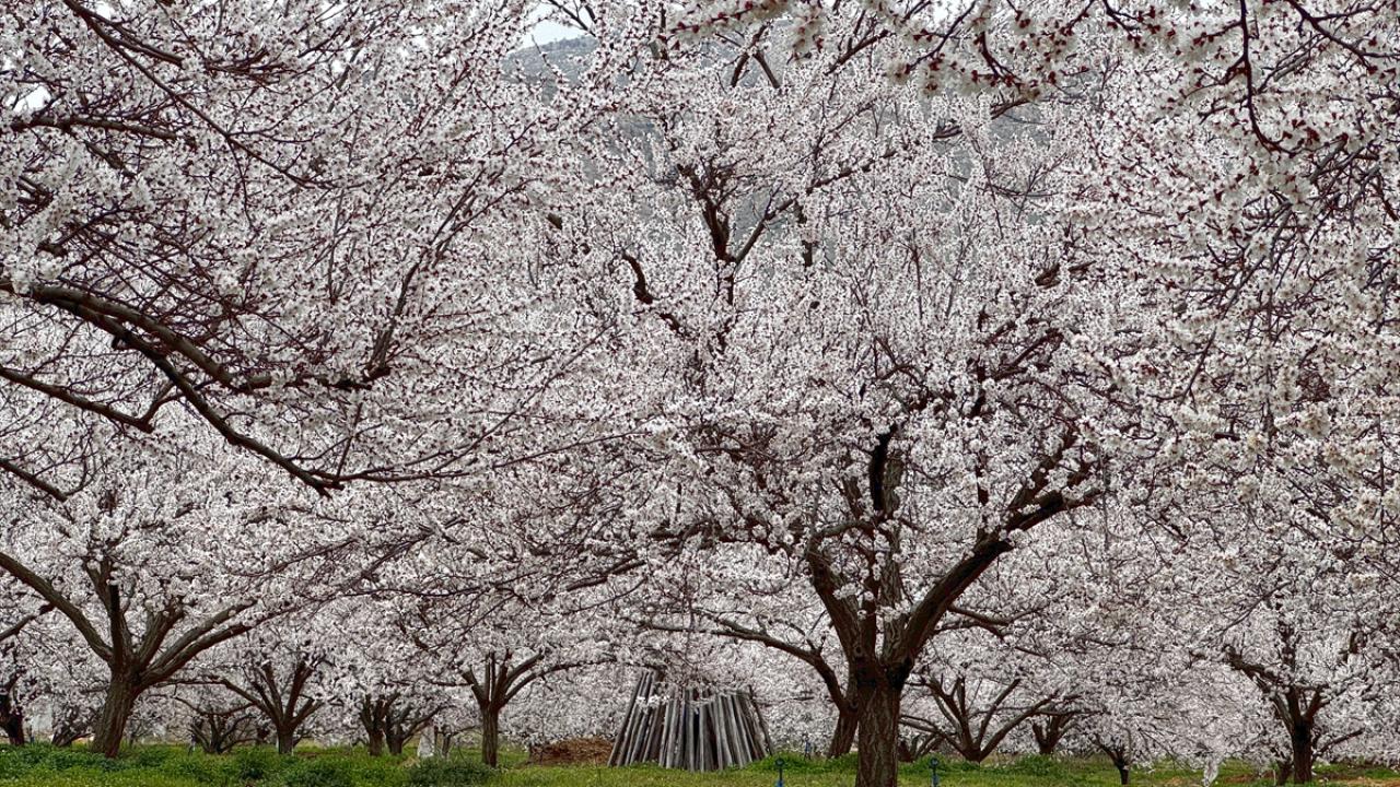 Beyaza bürünen kayısı ağaçları doğaseverler ve fotoğraf tutkunları için de güzel manzara oluşturuyor.
