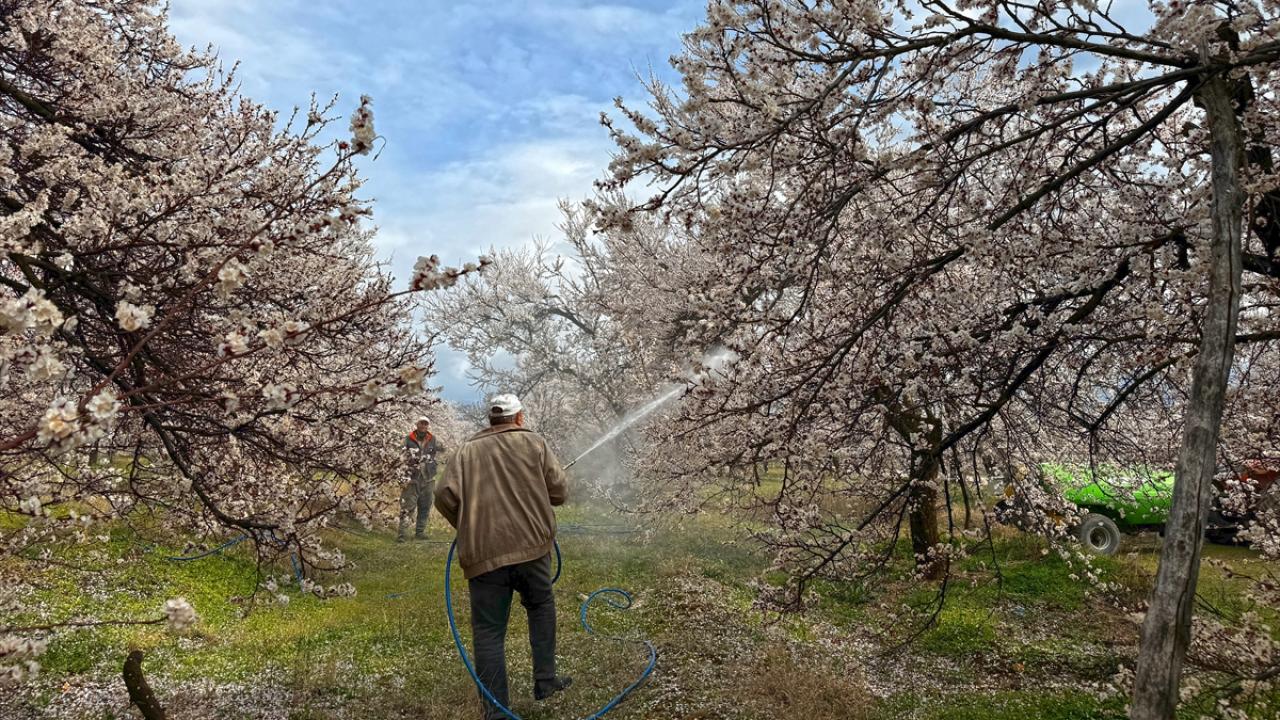 Bu yıl ilkbaharda düşen yağışlarla oluşan nemin, kayısı ağaçlarında her yıl görülen ve verimi düşüren bir tür mantar hastalığı olan monilyayı artıracağından endişe duyan üreticiler, ilk çiçeklenme döneminden itibaren zirai ilaçlama yapıyor.