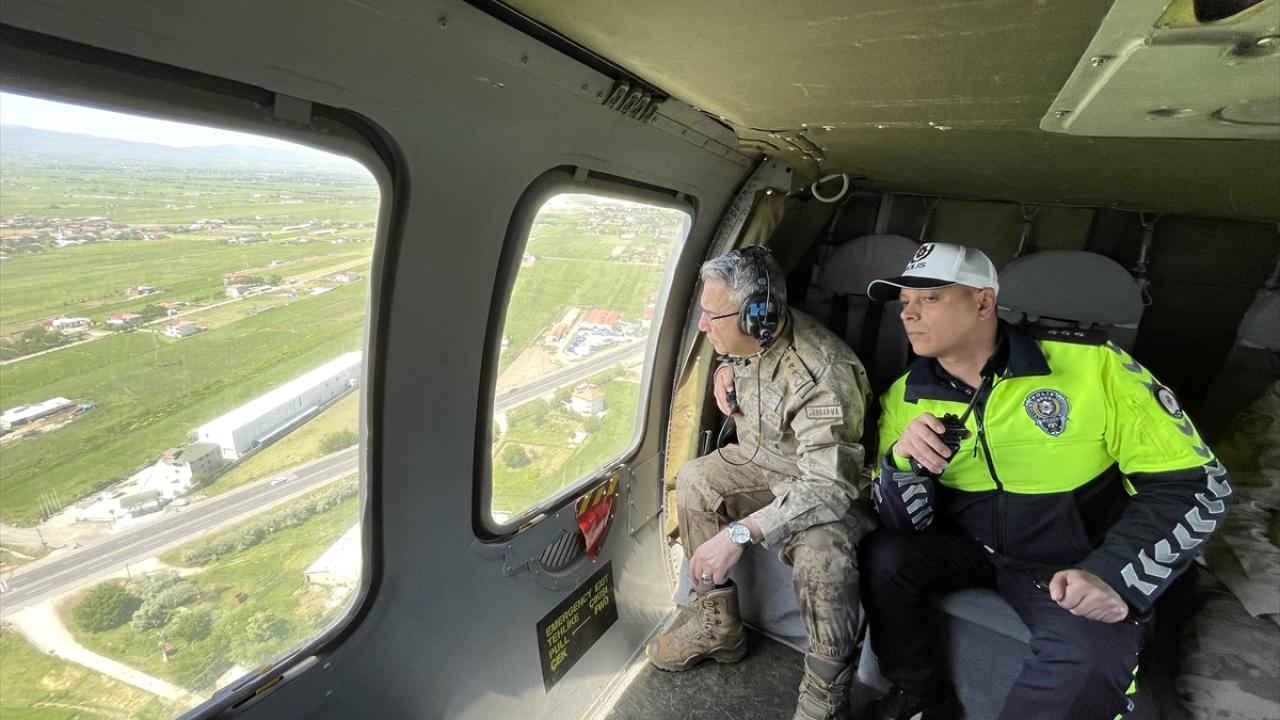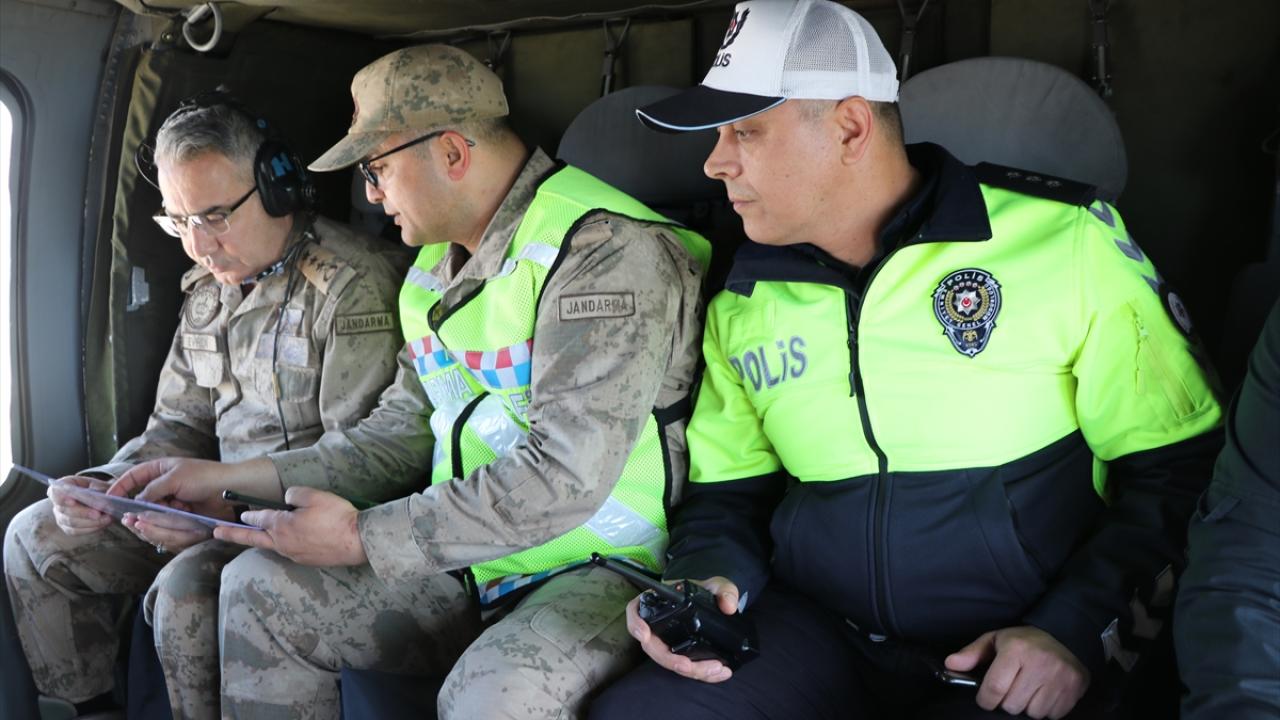 İl Jandarma Komutanlığı ve İl Emniyet Müdürlüğü ekipleri Karayolu Trafik Güvenliği Eylem Planı çerçevesinde trafik akışının yoğun olduğu kara yollarında helikopterle denetim yaptı.