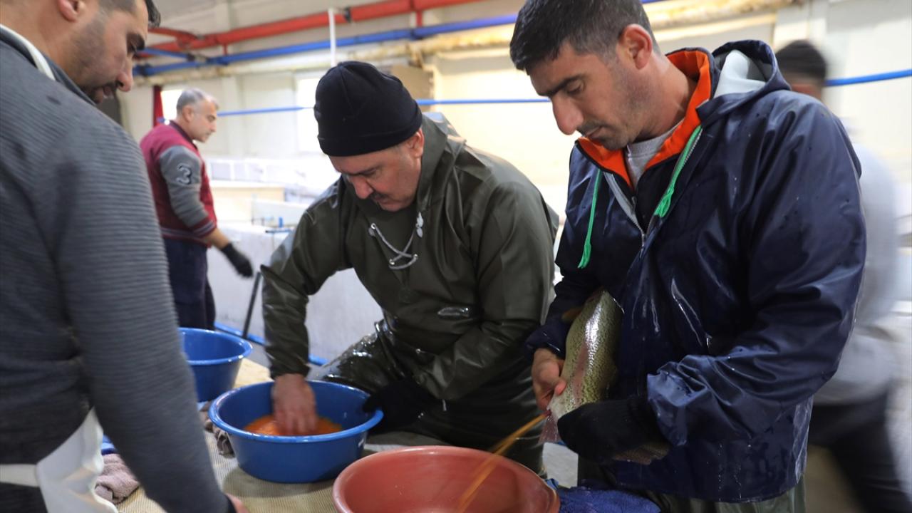 Keban Su Ürünleri Üretim Tesisinde bu yıl verimli geçen alabalık sağımı döneminde 1400 anaç alabalıktan yaklaşık 3 milyon civarında yumurta elde edildi.