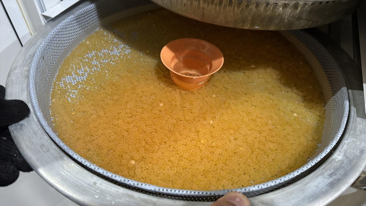 Yumurtalar kuluçka dolaplarındaki tavalarda 10 santigrat derecede bekletilerek 31 günün sonunda balık larvalarının çıkması sağlanıyor.