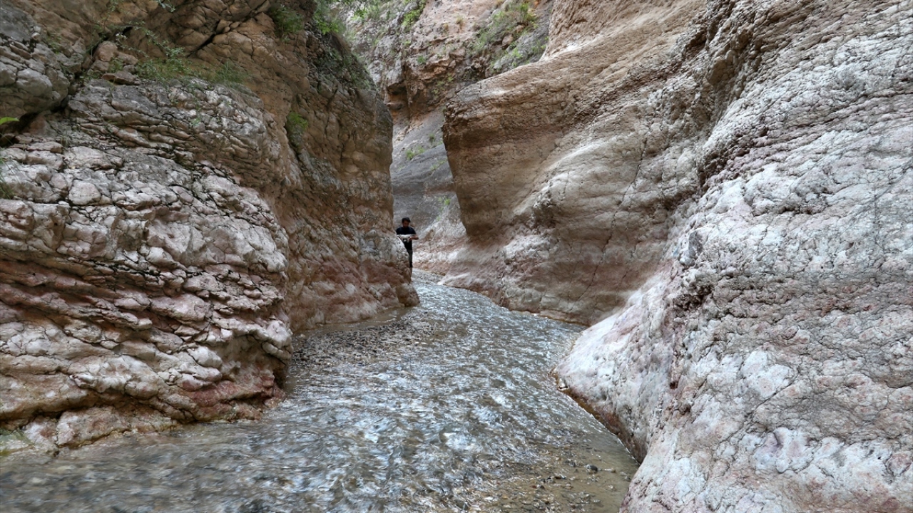 Elazığ'da coğrafi olarak geçen yıl keşfedilen ve 45 milyon yıllık olduğu ifade edilen doğa harikası Saklıkapı ve Karaleylek kanyonları ile çevresi ilkbaharın renkleriyle kartpostallık manzara oluşturuyor.