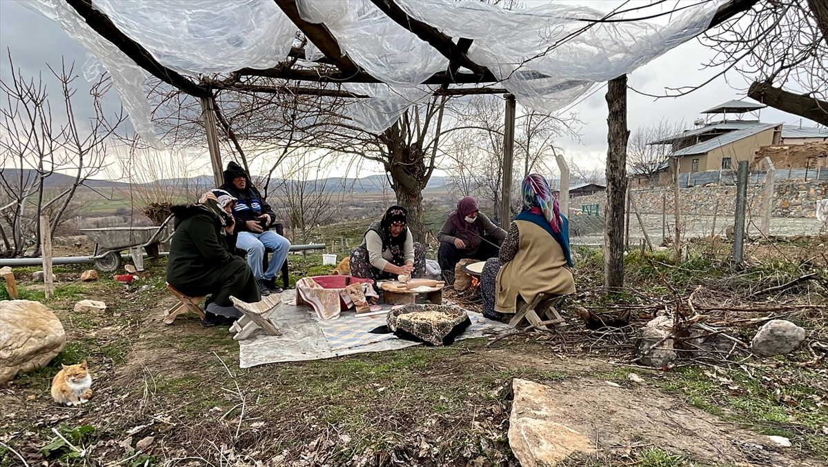 Bu lezzet telaşının yaşandığı köylerden Beşik köyünde de kadınlar haftada bir kolları sıvayarak büyük emekle sac ekmeği hazırlıyor.