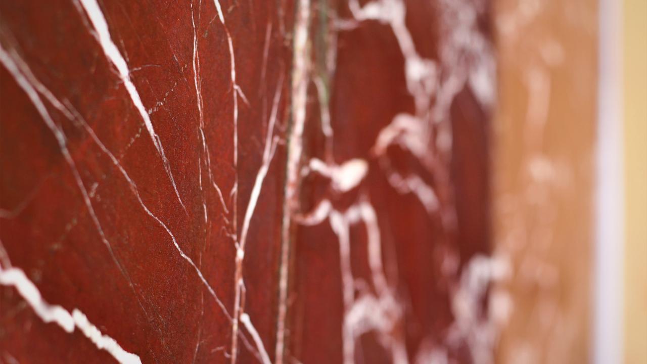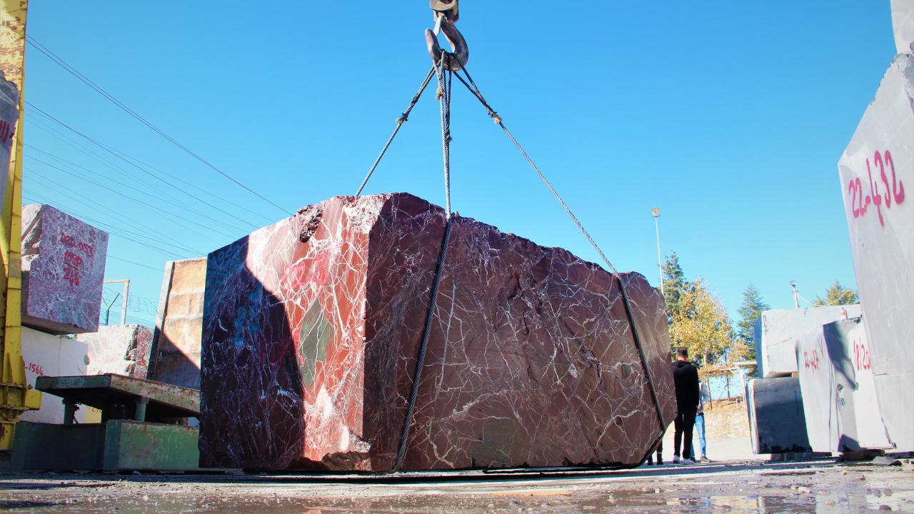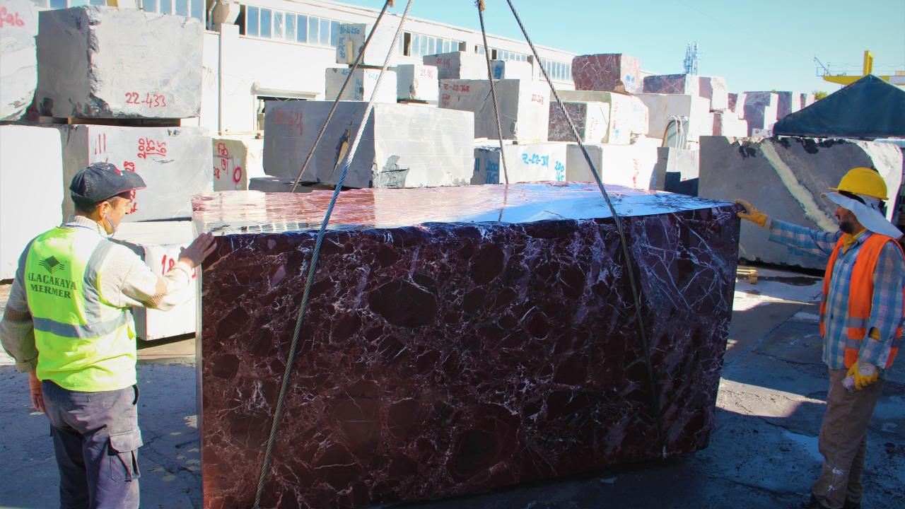 Elazığ'ın Alacakaya ilçesinde çıkarılan vişne renginde, damarlı yapıya sahip, dekoratif amaçlı yoğun ilgi gören mermer, 4 kıtada 60 ülkeye ihraç ediliyor.