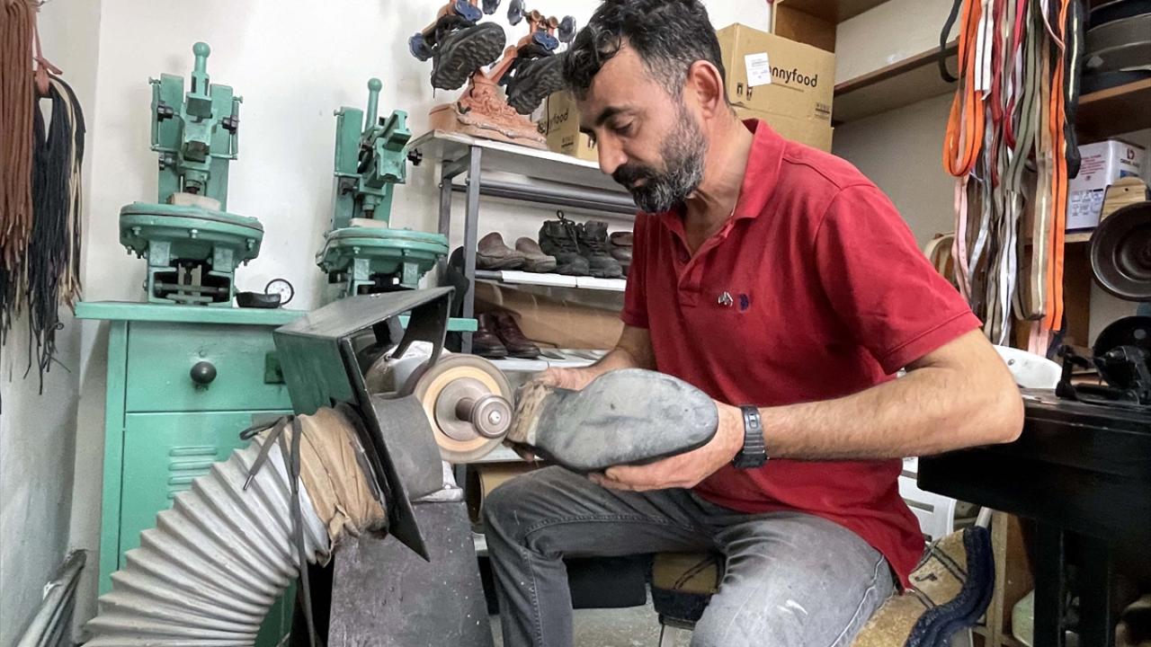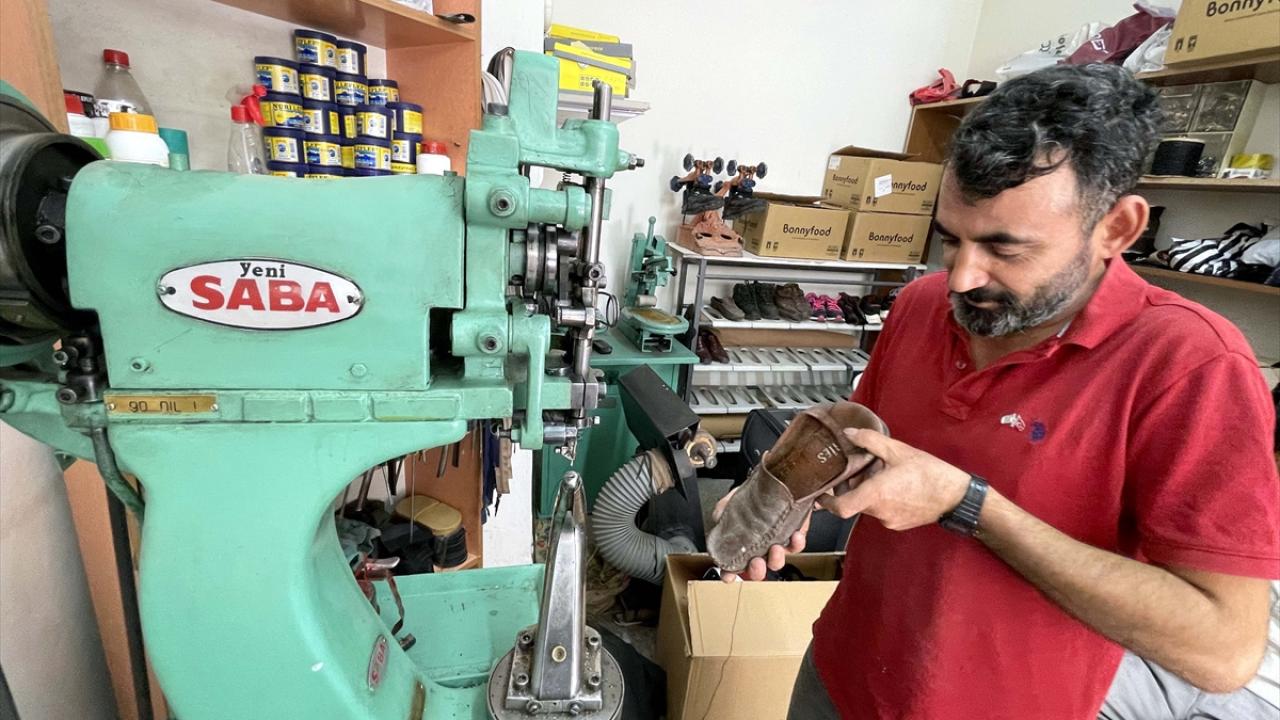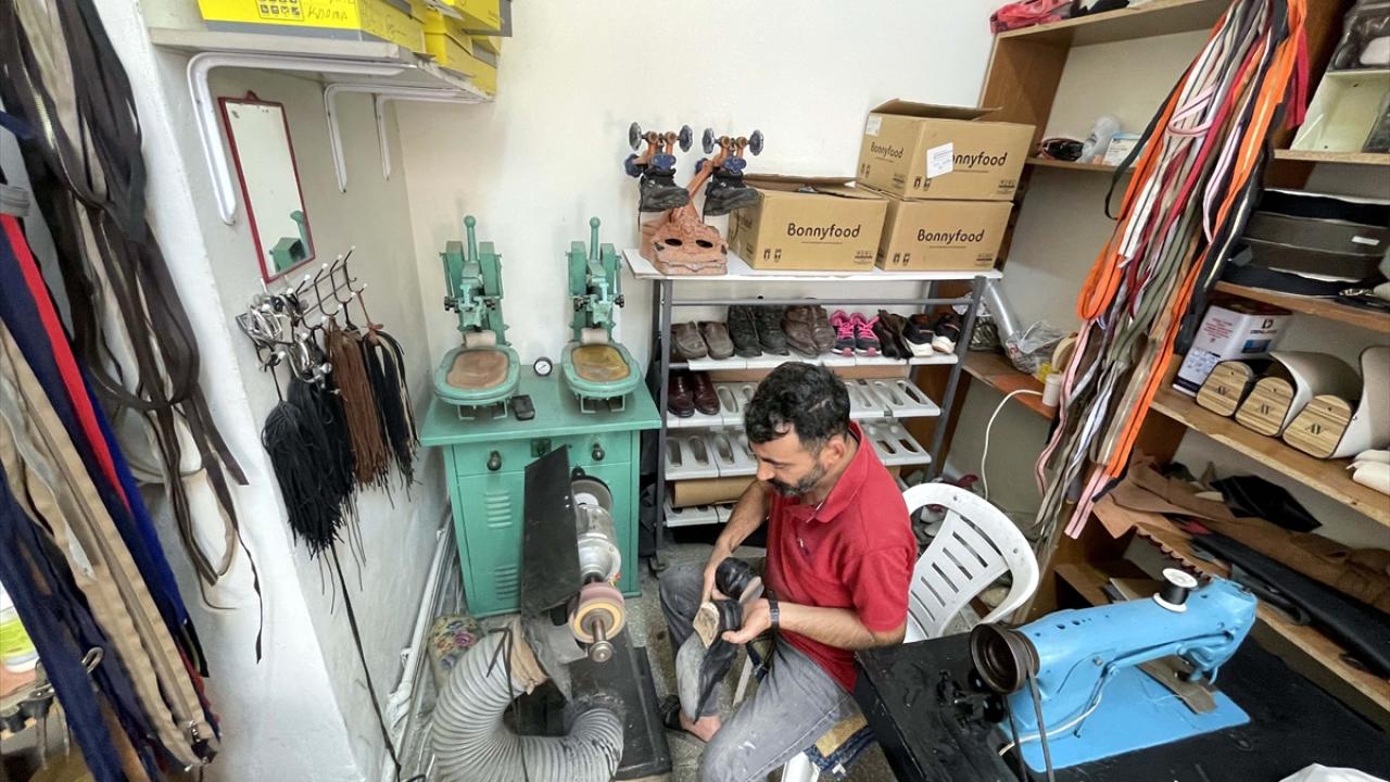 Ayakkabı tamirciliği yaparak geçimini sağlayan Kazar Yeni Mahalle`de 15 metrekarelik dükkanda mesleğini sürdürüyor.