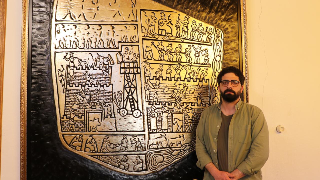 Amacının bölgedeki önemli tarihi buluş olan Harput kabartmasına dikkati çekmek olduğunu ifade eden Bakır, "Oyma sanatı ve varağı birleştirerek tesadüfen bulunan ve 4 bin yıllık olduğu ortaya çıkan Harput kabartmasını ahşaba nakşettim. Büyük bir keyifle yaptım." dedi.