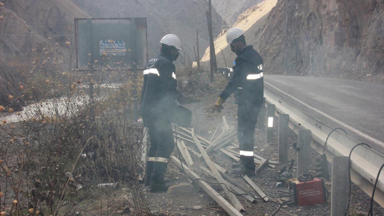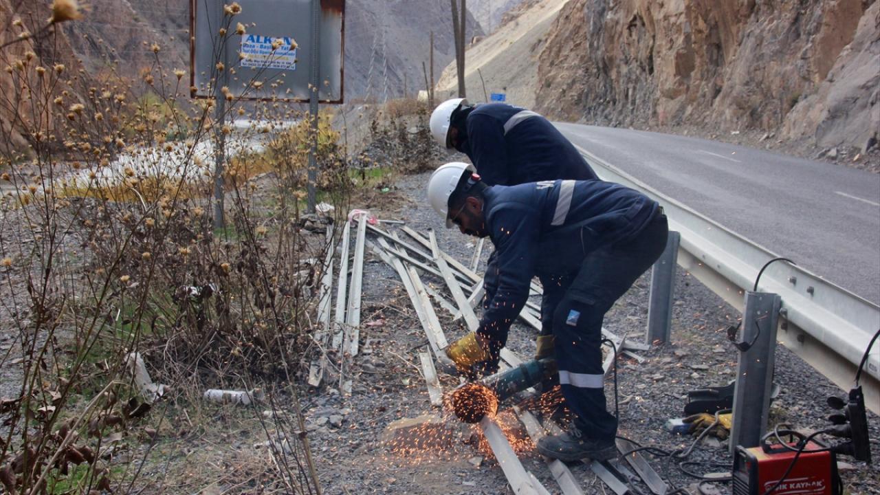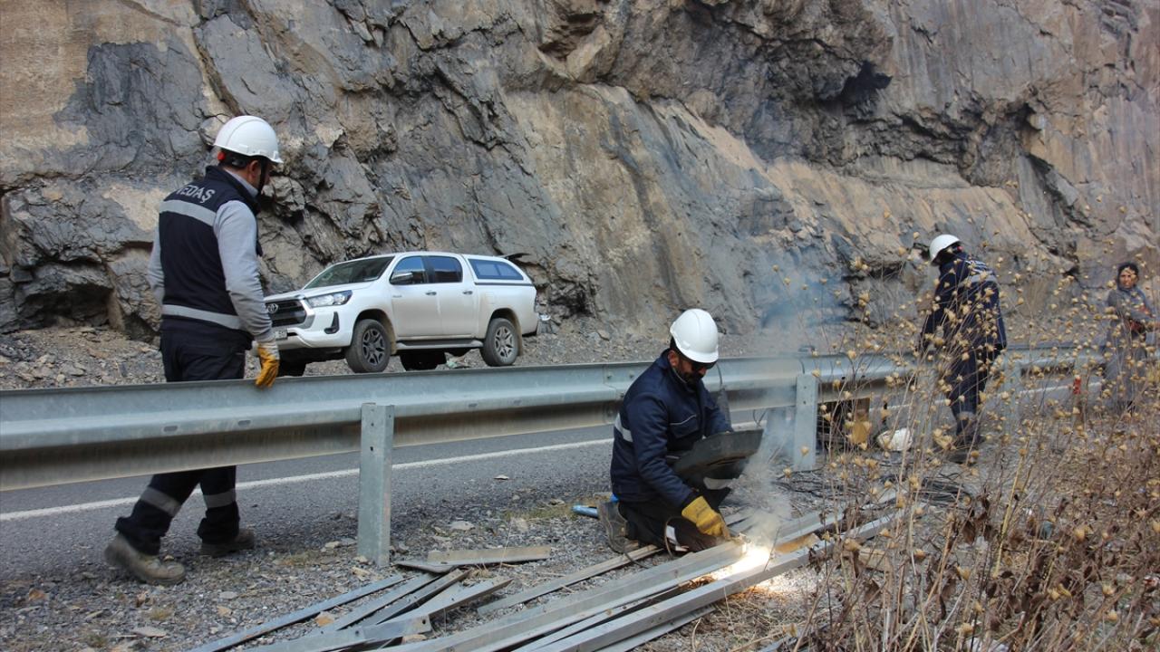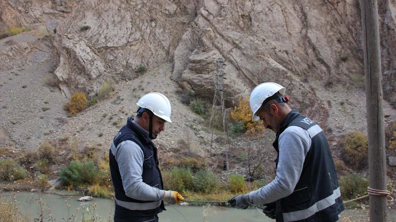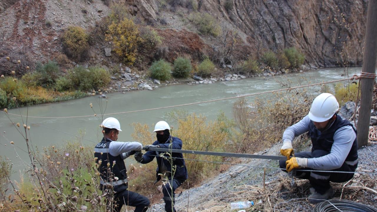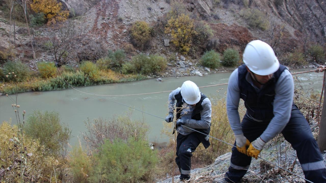 Bu kapsamda, kente 15 kilometre uzaklıktaki Karakaya Tüneli mevkisinde çalışma yürüten görevliler, Zap Suyu`nun karşısında kalan direklerin onarımı için gerekli malzemeyi kurdukları teleferik sistemiyle taşıdı.