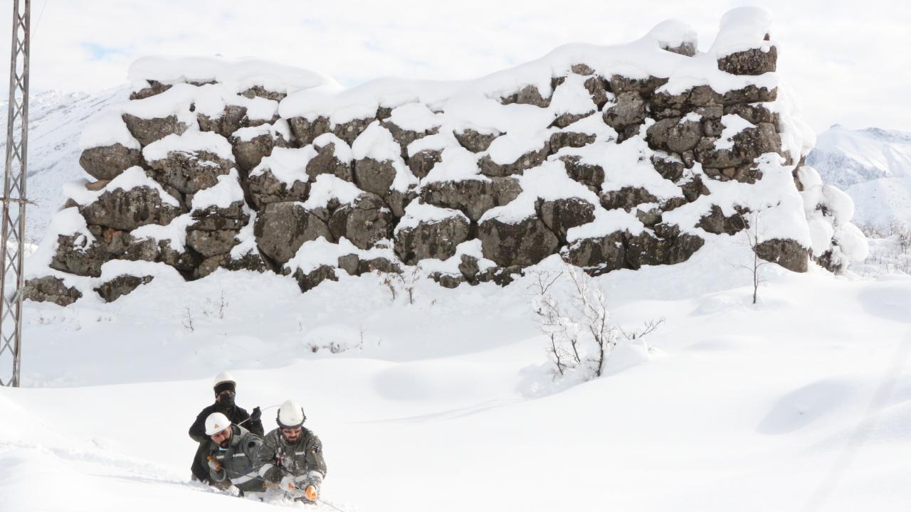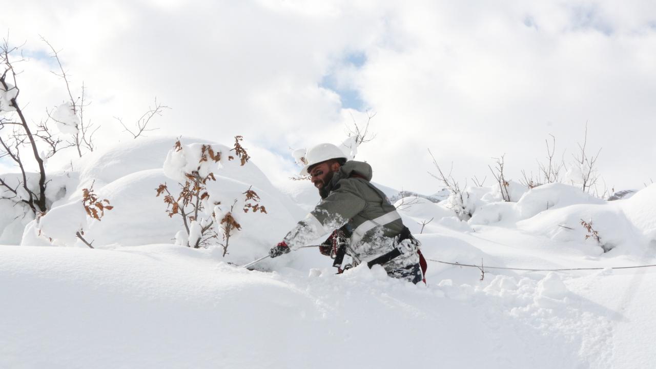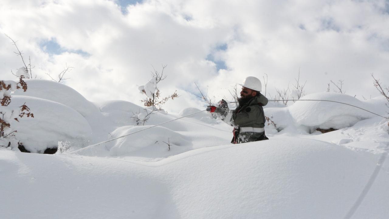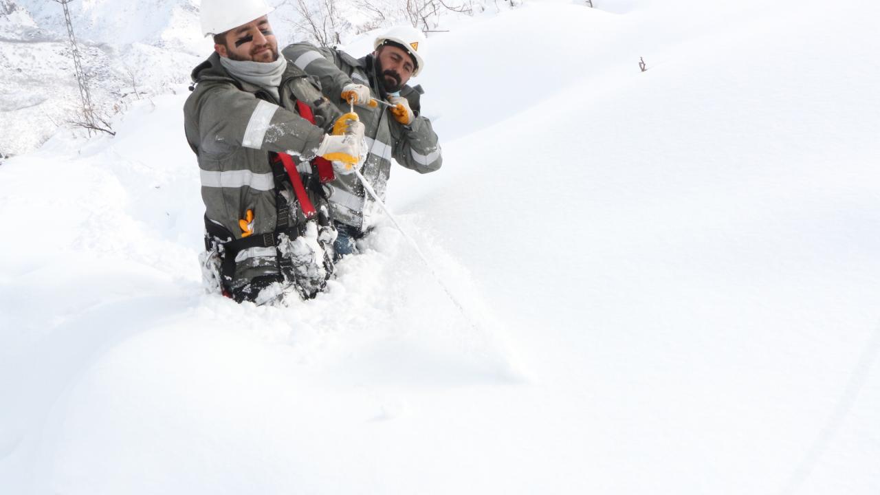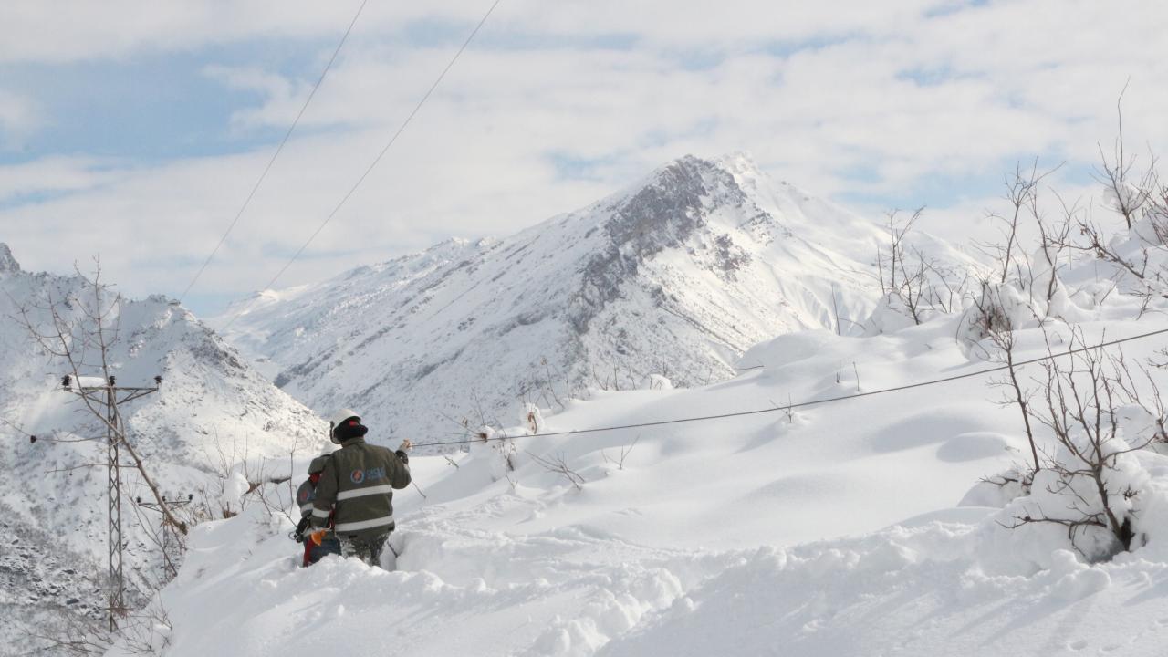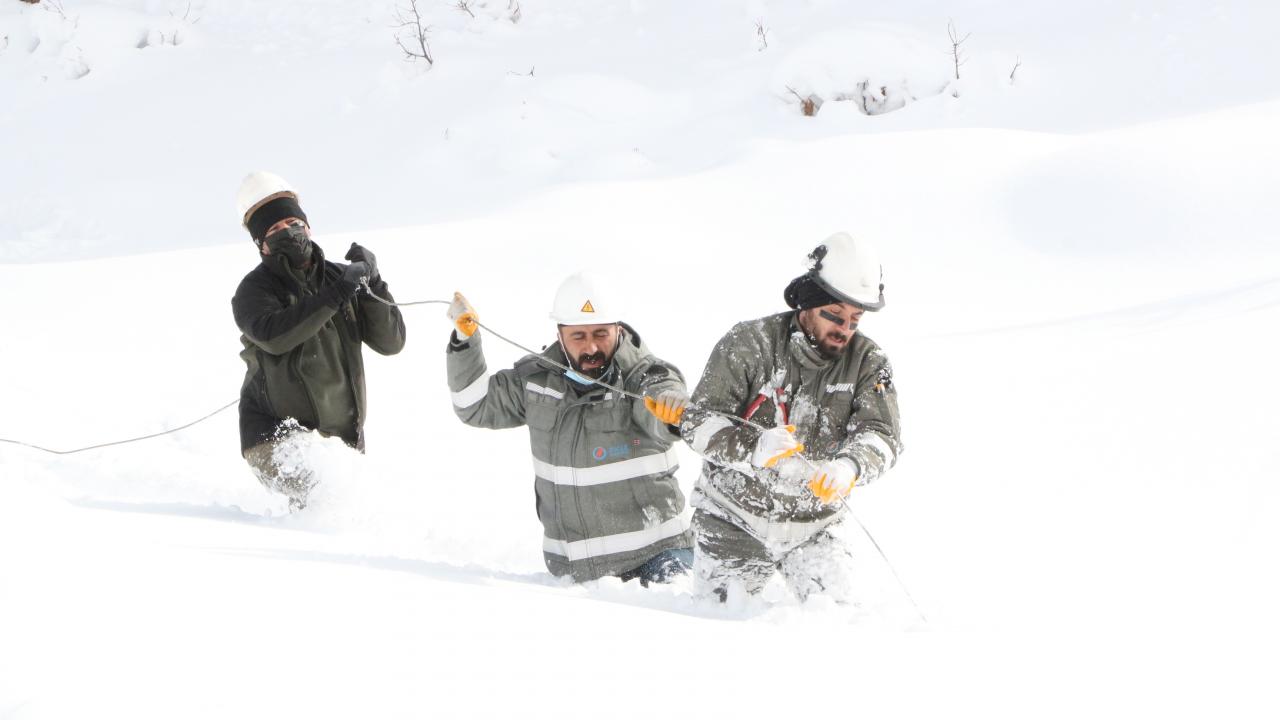 Şırnak'ın Beytüşşebap ilçesinde, kar kalınlığının 2 metreye ulaştığı 2 bin 800 rakımlı bölgedeki yerleşim yerinde elektrik kesintileri, Dicle Elektrik Dağıtım A.Ş. ekiplerinin zorlu çalışmasıyla gideriliyor.