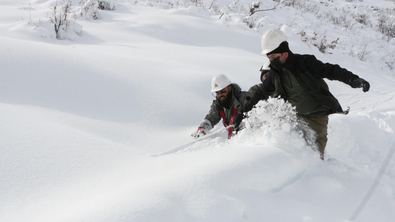 Ekipler, 2 bin 800 metre yükseklikte ve 1 metre karın içinde çalışmalarını yürüten ekipler, ara sıra ateş yakarak, çay içip, vücut ısılarını dengeliyor.