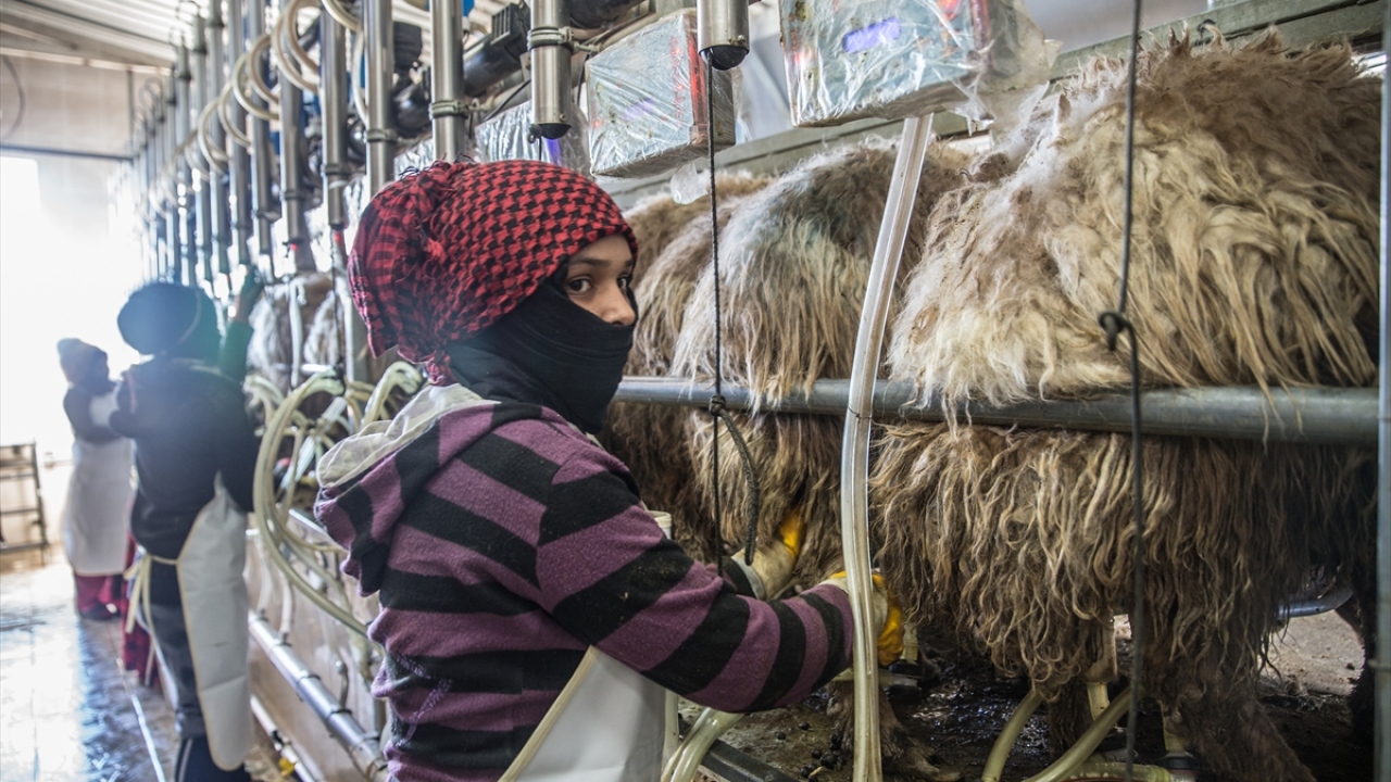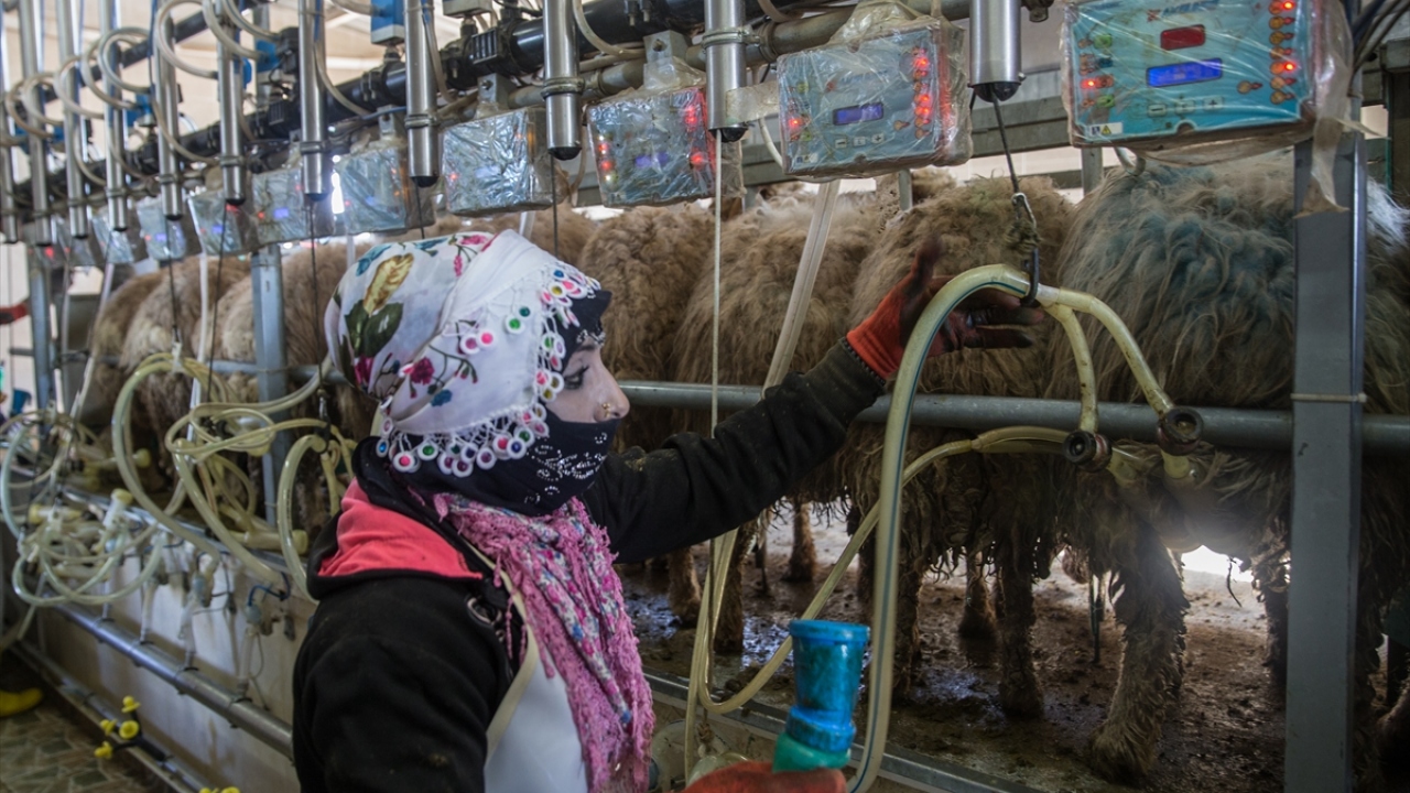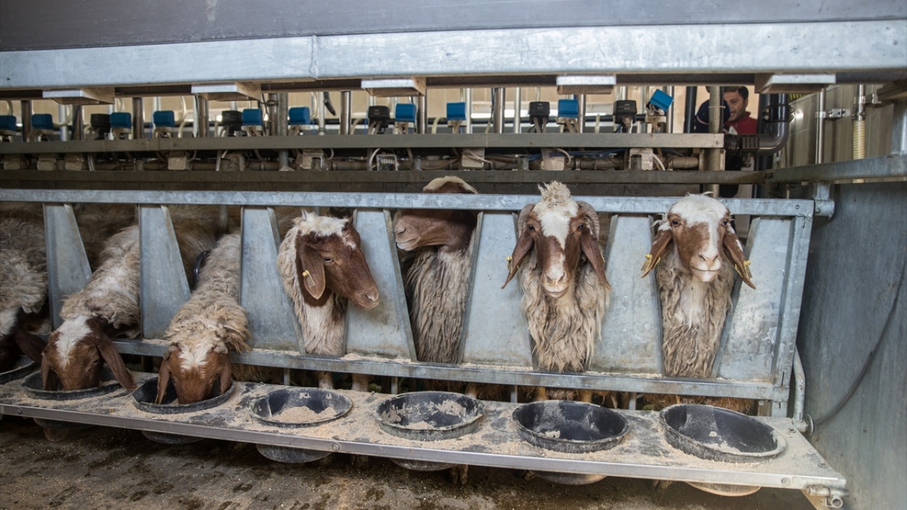 Doğumların başlamasıyla kuzu seslerinin yankılandığı işletmede, koyunların tam otomatik makinelerde sağılmasının ardından yavruların her gün aynı yer ve saatte annelerini emmesi sağlanıyor.