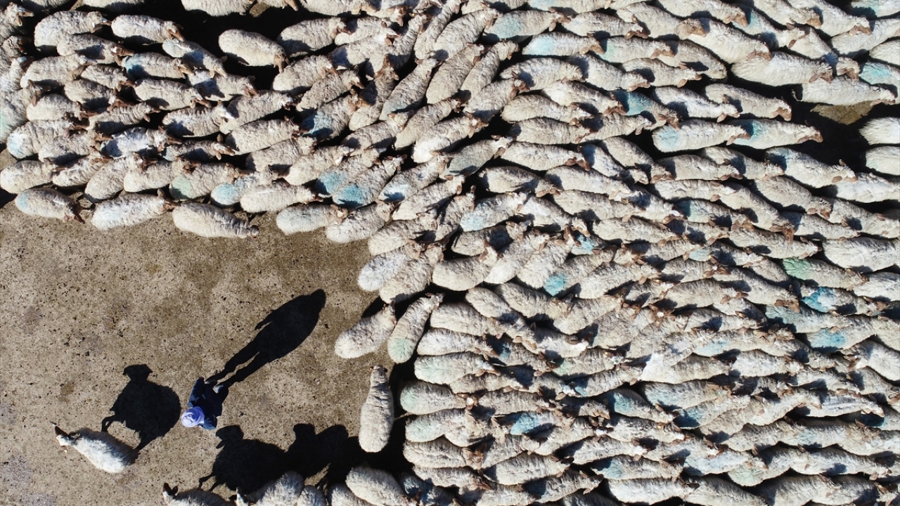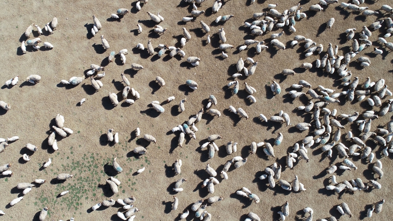 Drone ile görüntülenen buluşmada, bir kuzunun yaklaşık bin 500 hayvanın olduğu ortamda saniyeler içinde annesine kavuşması dikkati çekiyor.