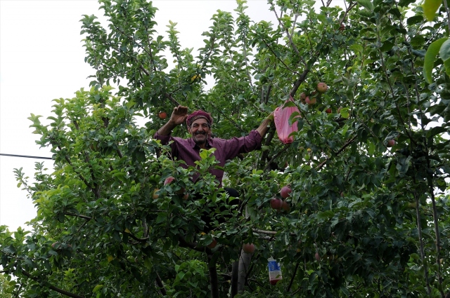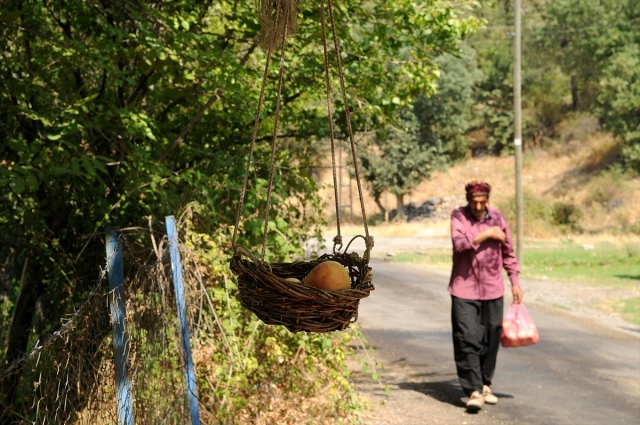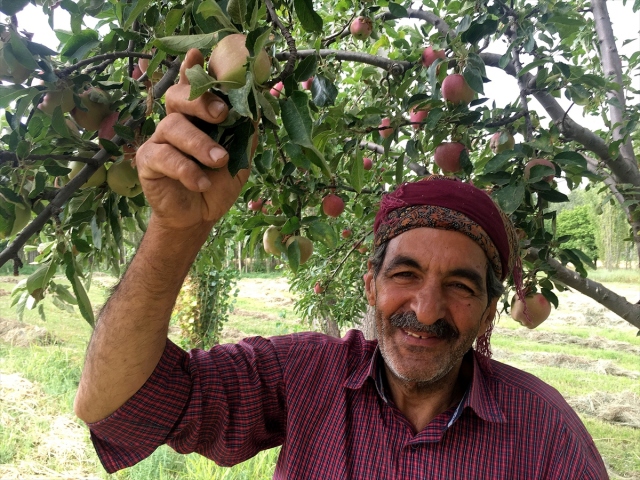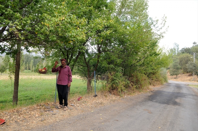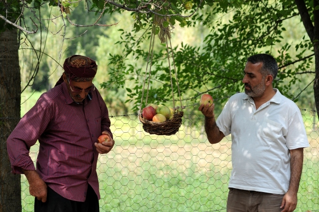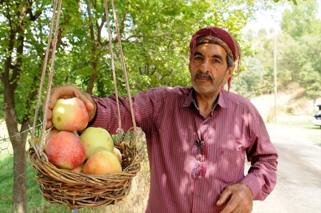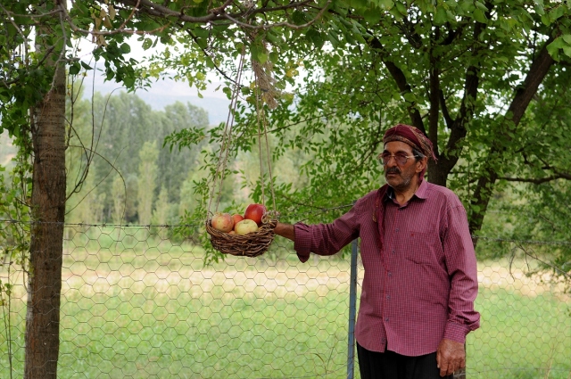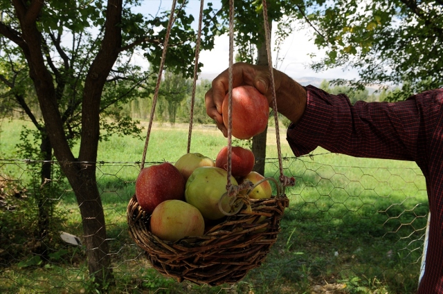 Bingöl'de yaşayan Ömer Çakır (62), yetiştirdiği elmaları bahçesinin kenarına astığı “göz hakkı sepeti” ile vatandaşlara ikram ediyor.