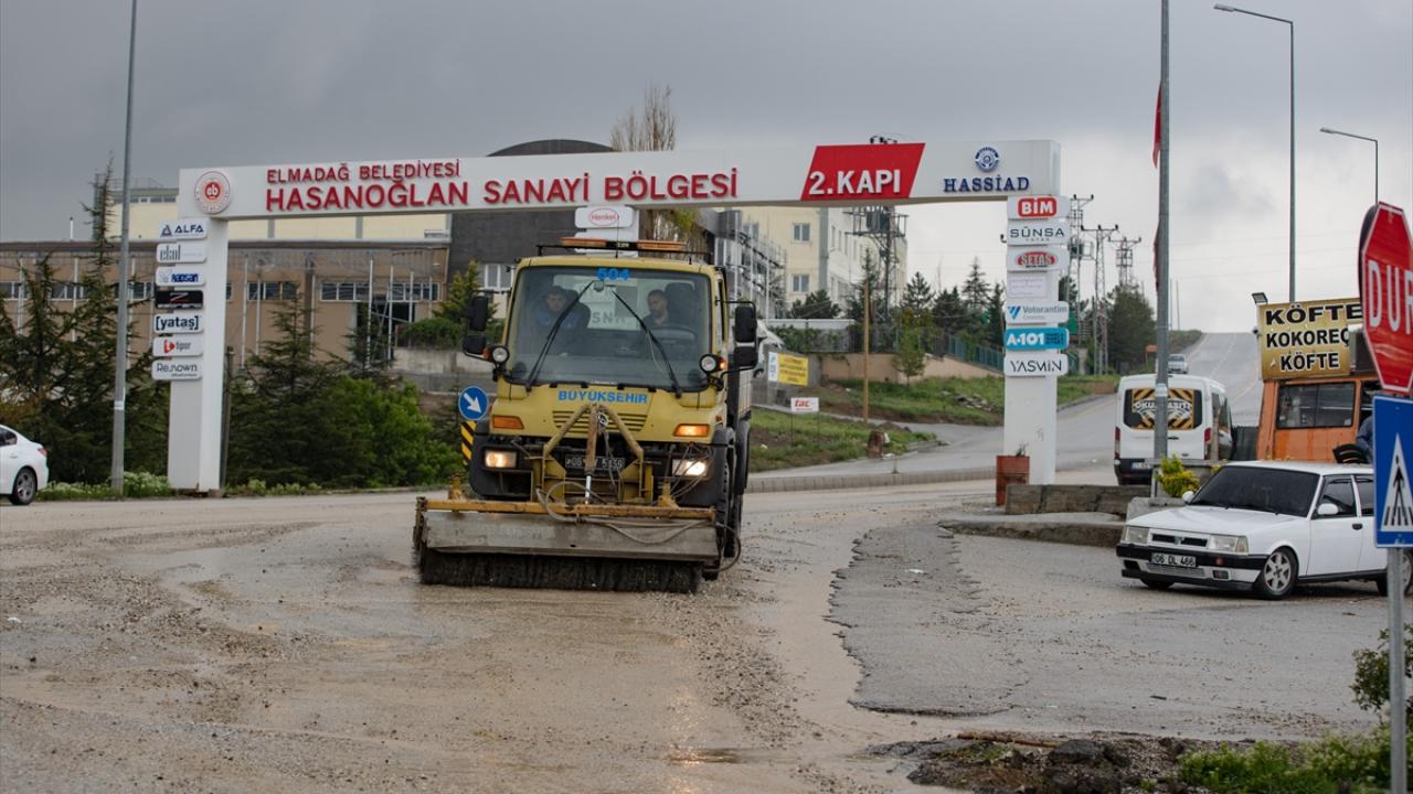 Hasanoğlan mevkisinde etkili olan şiddetli yağışların ardından başlatılan ve gece boyu süren temizlik ve tahliye çalışmaları günün aydınlanmasıyla hız kazandı.