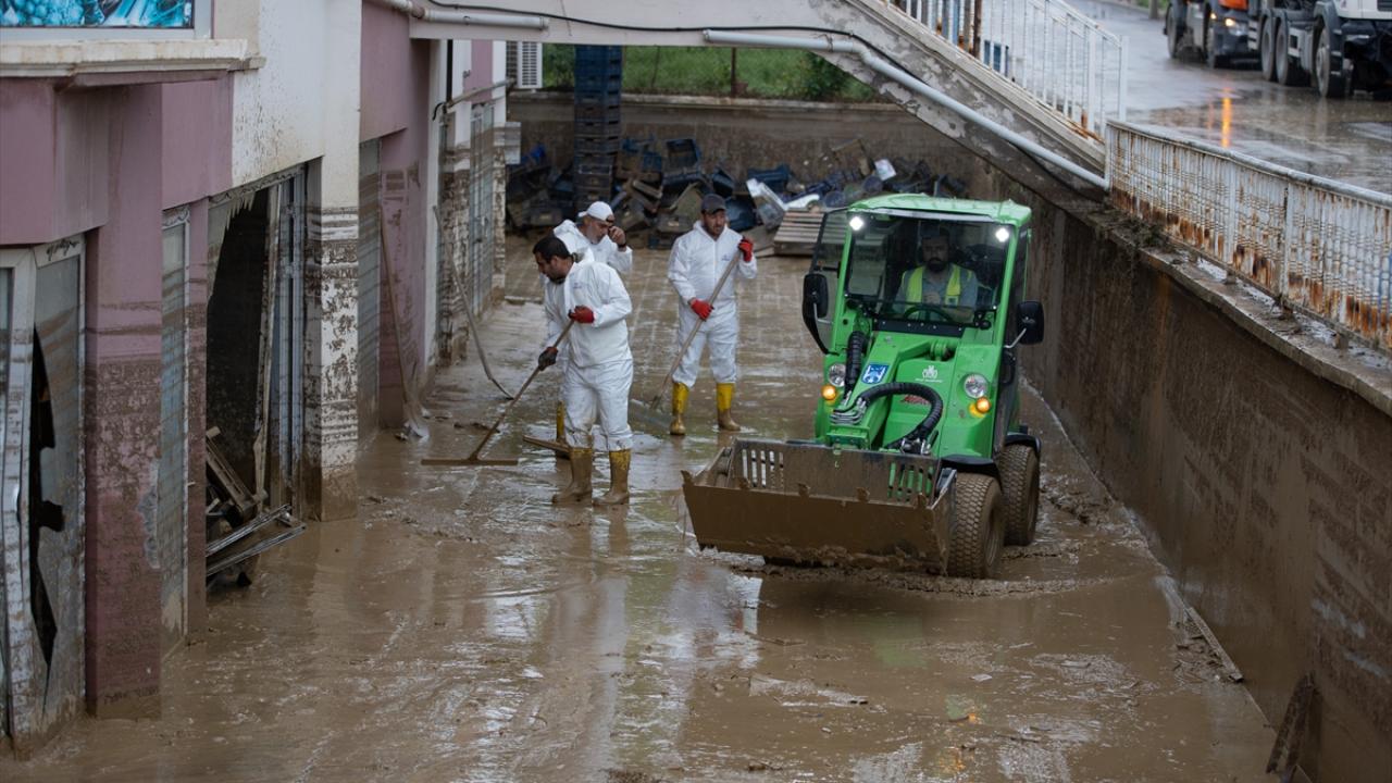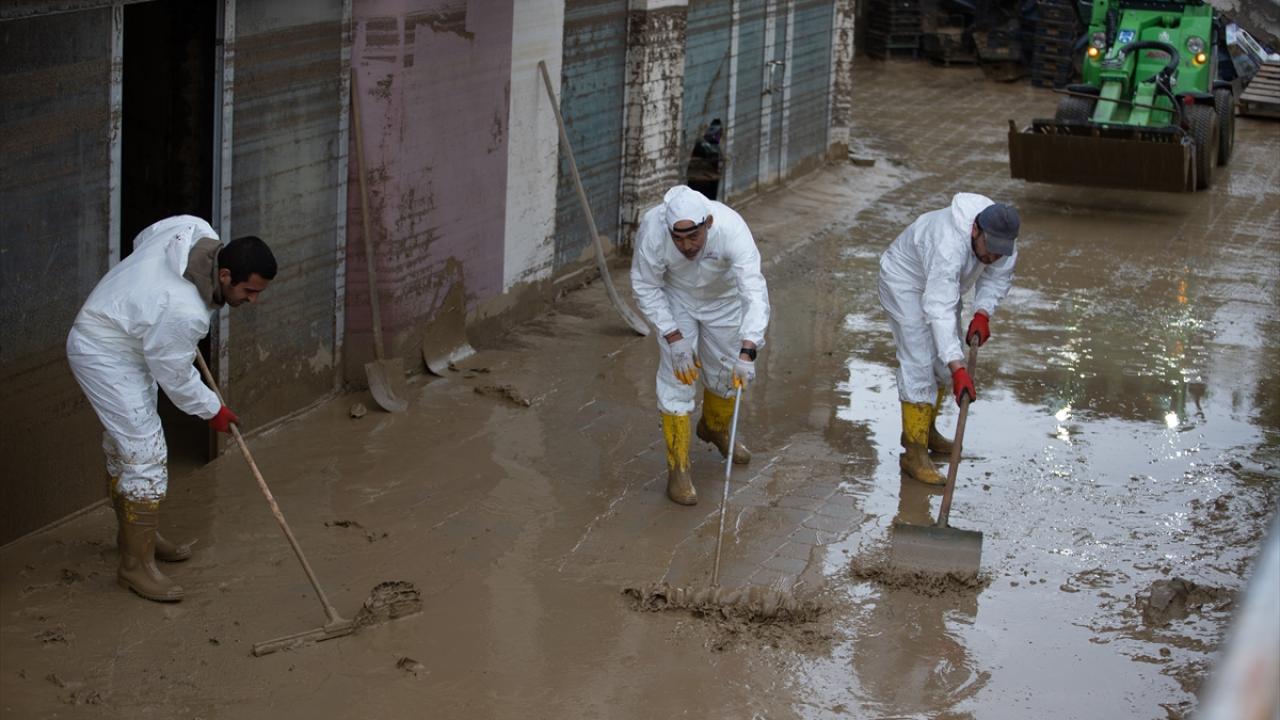 Çamur birikintileri, iş makineleri ve küreklerle temizlenirken bir yandan da kapanan kanalizasyonları açma çalışması yürütülüyor.