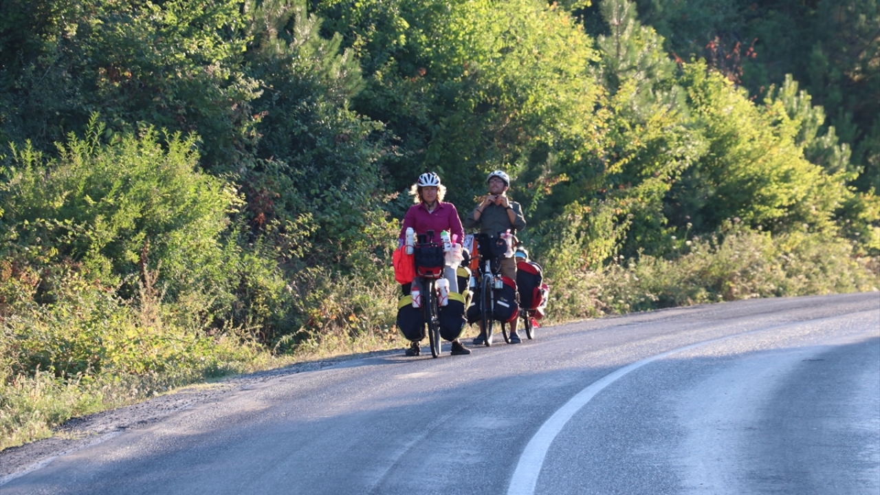 İzmir`den bisikletle çıktıklarını, Edremit Körfezi`nden Balıkesir, Bursa, İznik, İzmit, Sakarya üzerinden Kastamonu`ya geldiklerini anlatan Elmalı, sahil şeridini takip ettiklerini söyledi.