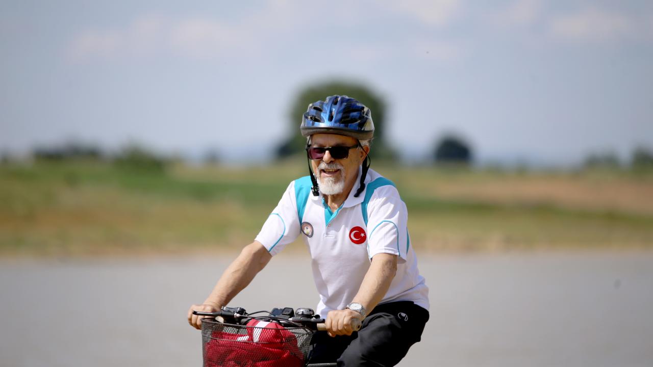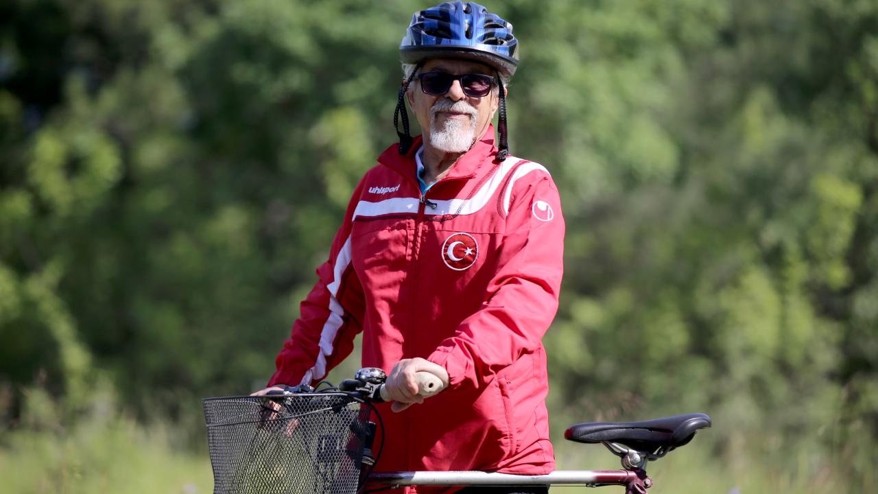Emekli öğretmen 69 yıldır pedal çevirerek zinde kalıyor