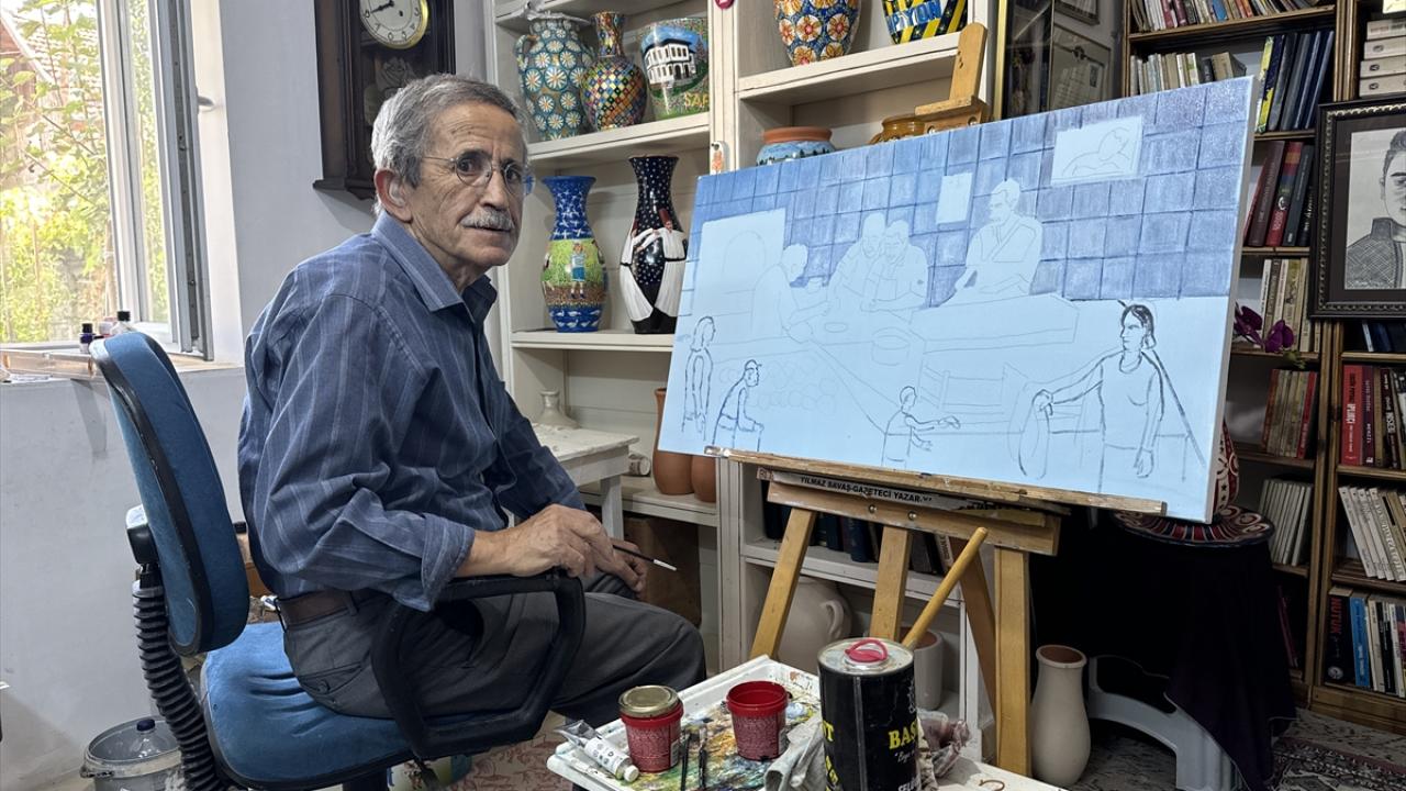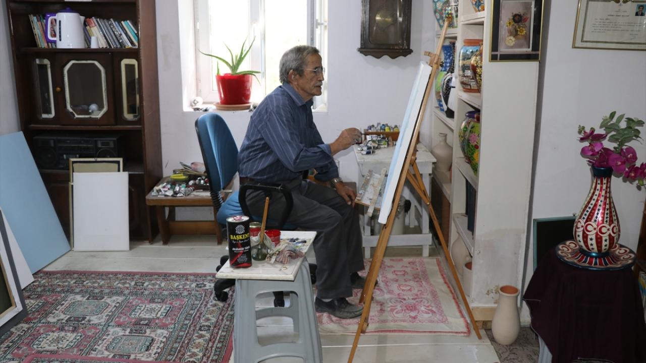 Yazıköy köyünde yaşayan eden 72 yaşındaki Sayım, ilkokul yıllarında resim yapmaya başladı.