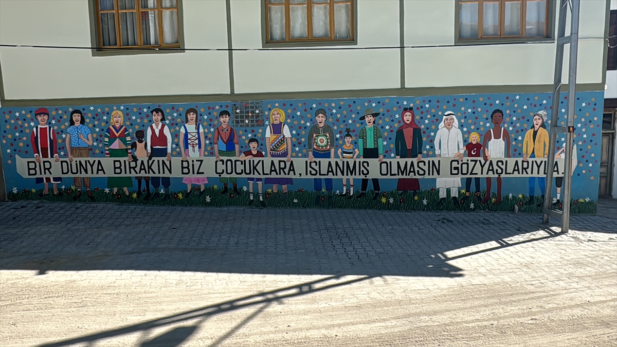 Emekli öğretmen köy evlerinin bahçe duvarlarını resimleriyle renklendiriyor