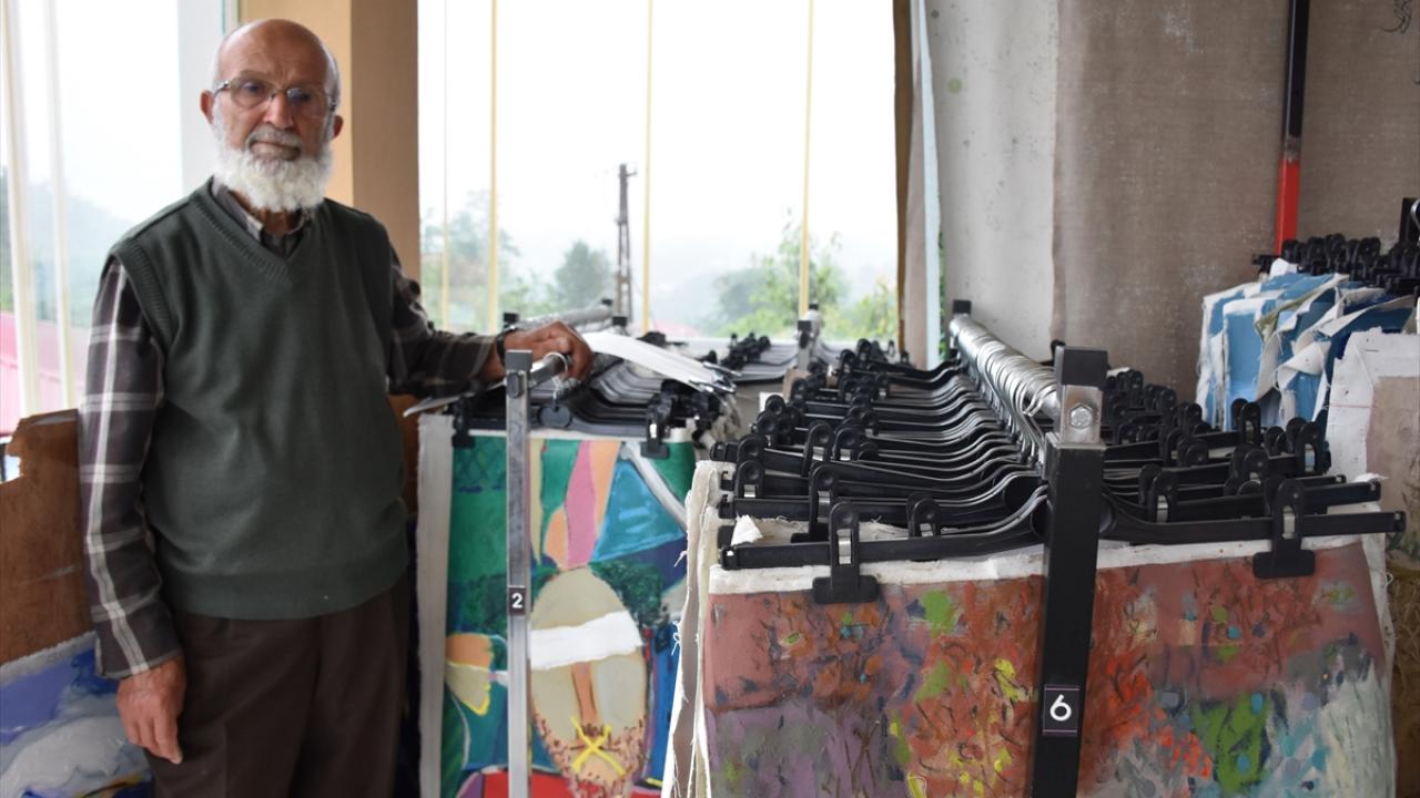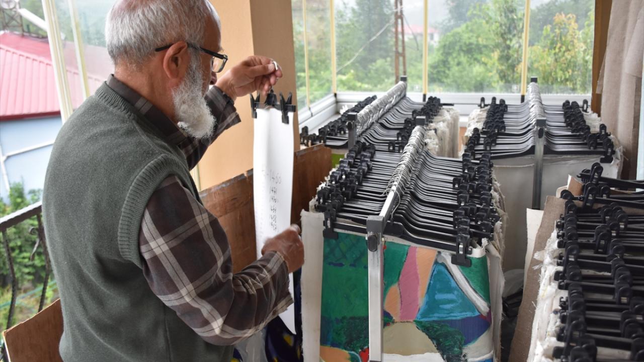 Trabzon'un Arsin ilçesinde yaşayan emekli resim öğretmeni Haydar Durmuş'un yıllardır yaptığı yağlıboya tablolar, eşi ile bir dairesinde yaşadığı üç katlı apartmanın boş daireleri ve merdiven boşlukları dahil tüm duvarlarını süslüyor.