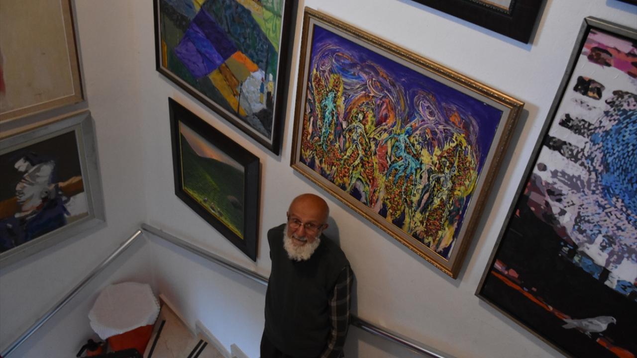 Emekli öğretmen yaşadığı apartmanı resim galerisine dönüştürdü