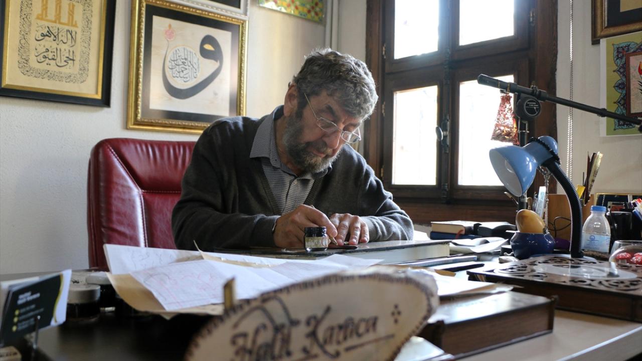 Eskişehirli hattat Halil Karaca, emekliliğinin ardından yöneldiği hat sanatında, tasarımlarını kamış kalemiyle aharlı kağıda sabırla işleyerek hem kendi üslubunu geliştiriyor hem de yeni ustalar yetiştiriyor.