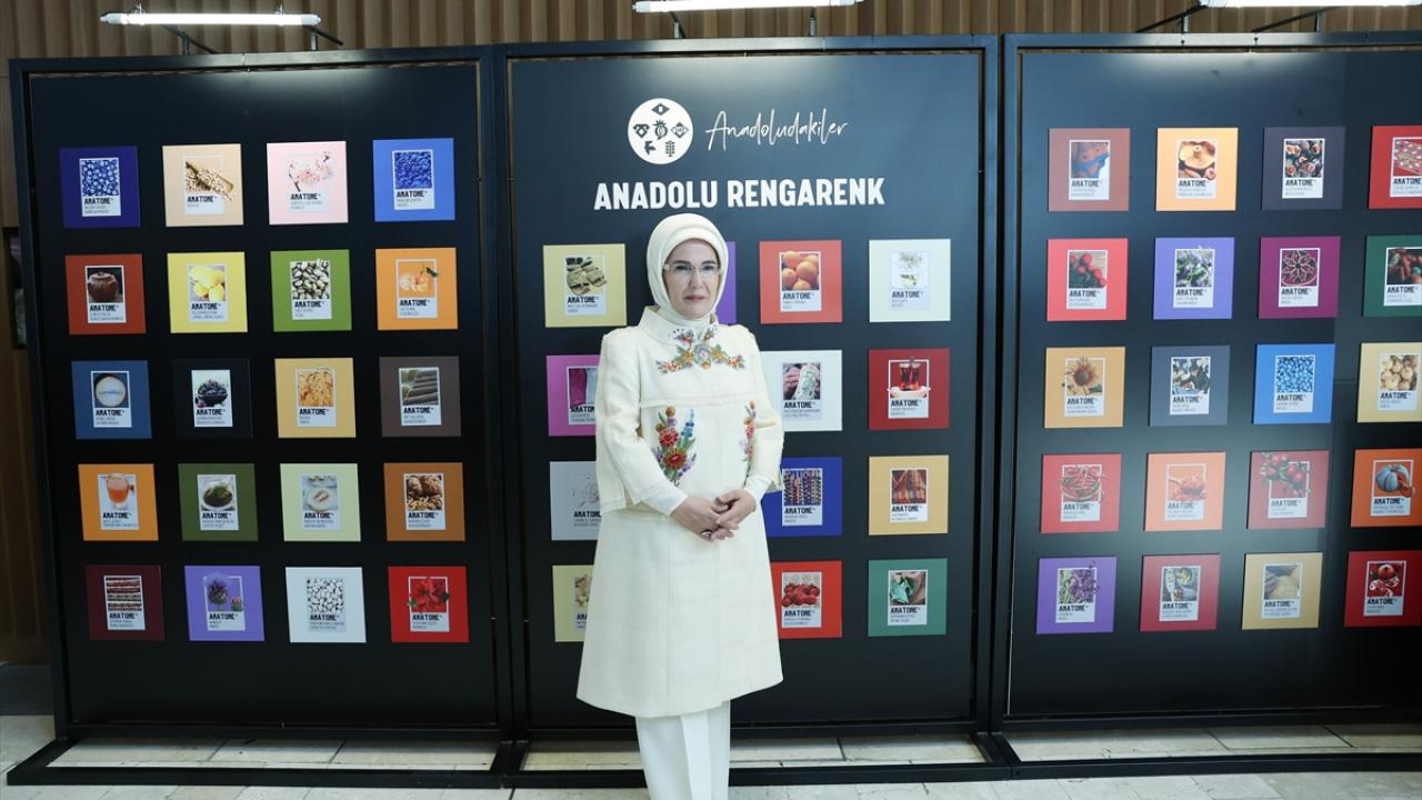 Emine Erdoğan, program öncesinde, beraberindekilerle el dokuması kumaşlar, halılar, takılar, doğal kokular, aksesuarlar ve gıdaların sergilendiği "Anadoludakiler" sergisini gezdi, Kalkınma Ajansları Genel Müdürü Ahmet Şimşek ile stant yetkililerinden ürünler hakkında bilgi aldı.