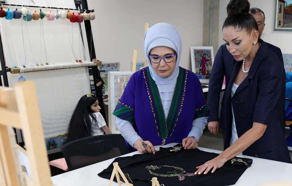 Emine Erdoğan, daha sonra Mihriban Aliyeva`nın girişimiyle, şehit aileleri, engelliler, öksüz ve yetim çocuklarla dar gelirliler için kurulan DOST Kapsayıcı Gelişim ve Yaratıcılık Merkezi`ni ziyaret etti. Emine Erdoğan`a, yetkililer tarafından merkez hakkında bilgi verildi.