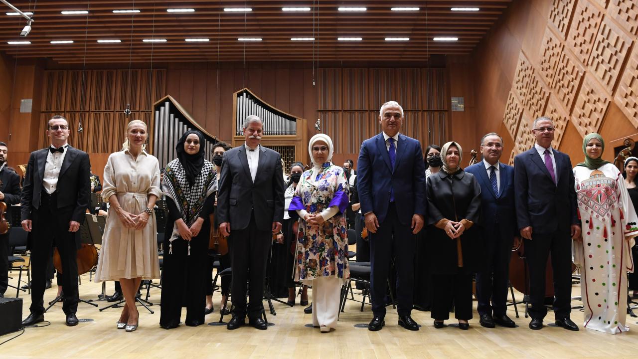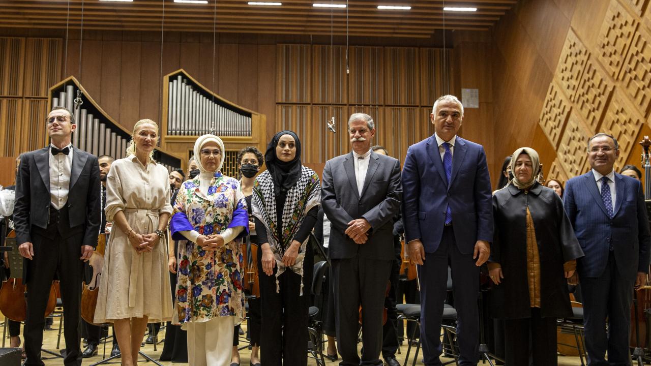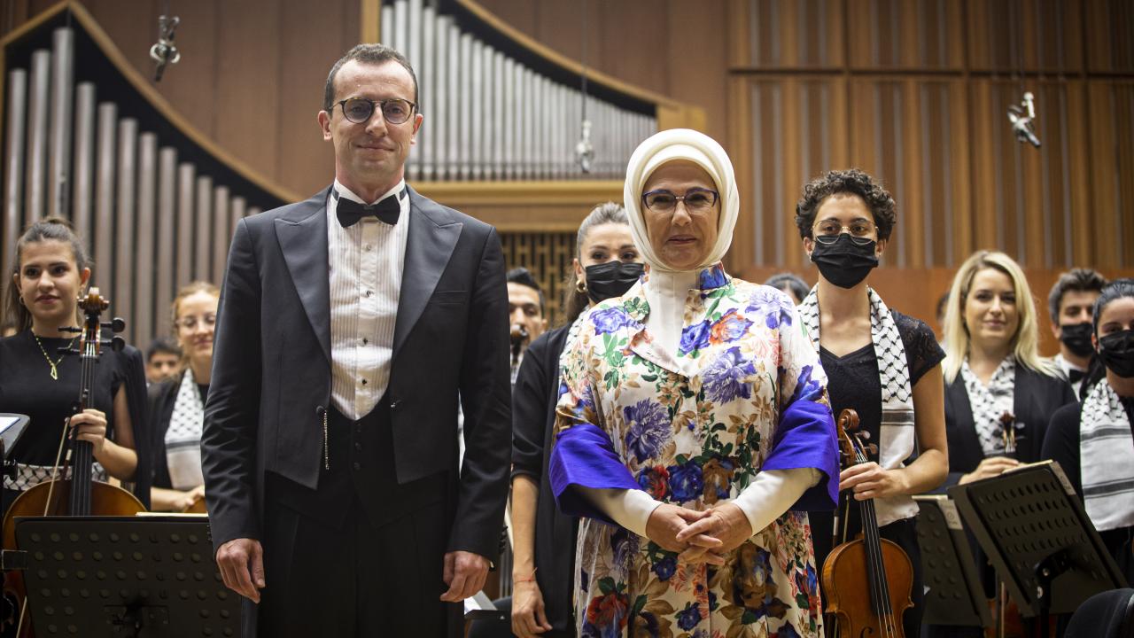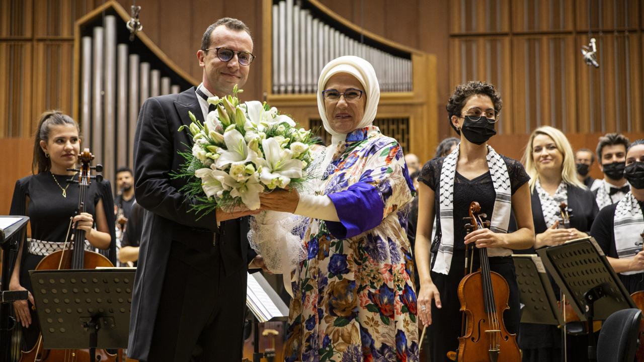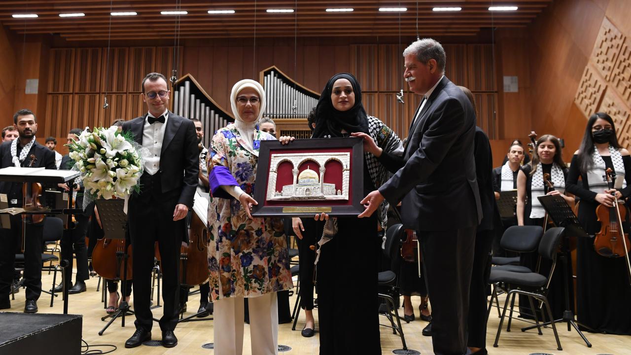 Cumhurbaşkanı Recep Tayyip Erdoğan'ın eşi Emine Erdoğan, daveti üzerine Türkiye'ye gelen Filistin direnişinin sembolü Mariam Afifi'nin de yer aldığı Filistin Gençlik Orkestrası üyeleri ve Cumhurbaşkanlığı Senfoni Orkestrası (CSO) sanatçılarının verdiği `Barış Konseri`ni izledi.