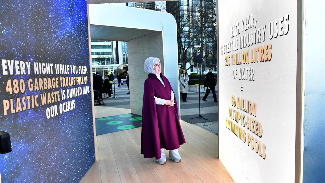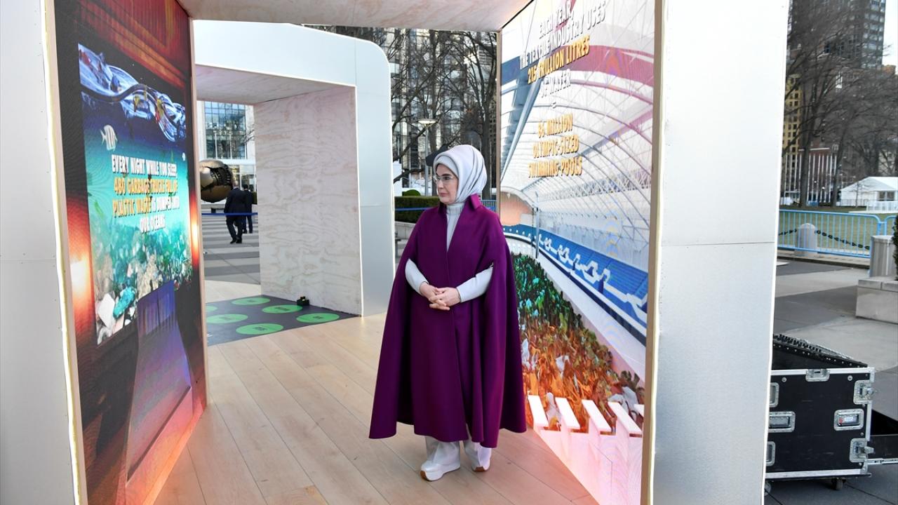 Emine Erdoğan, BM'deki "Sıfır Atık Enstelasyon Sergisi"ni ziyaret etti