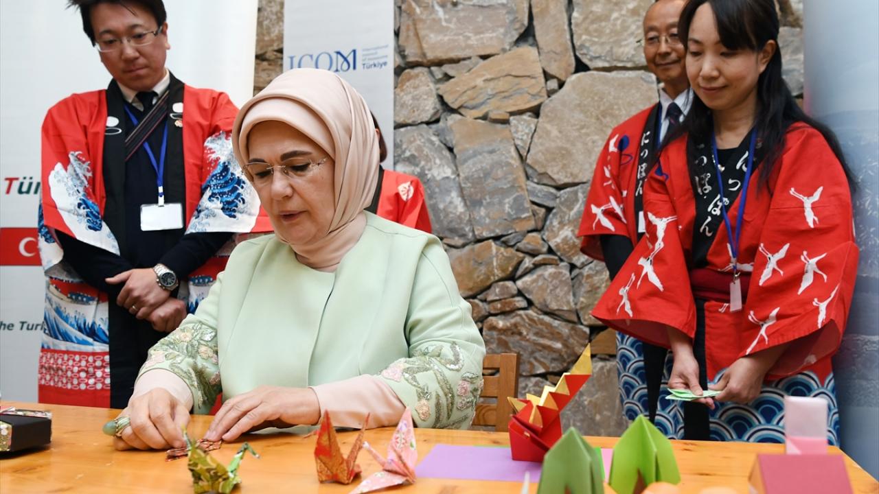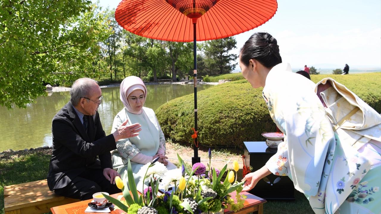 Program kapsamında Japon yöresel kıyafetleri giyen kadınlar tarafından Emine Erdoğan`a seremoni eşliğinde matcha Japon çayı ile Japon tatlısı ikram edildi.