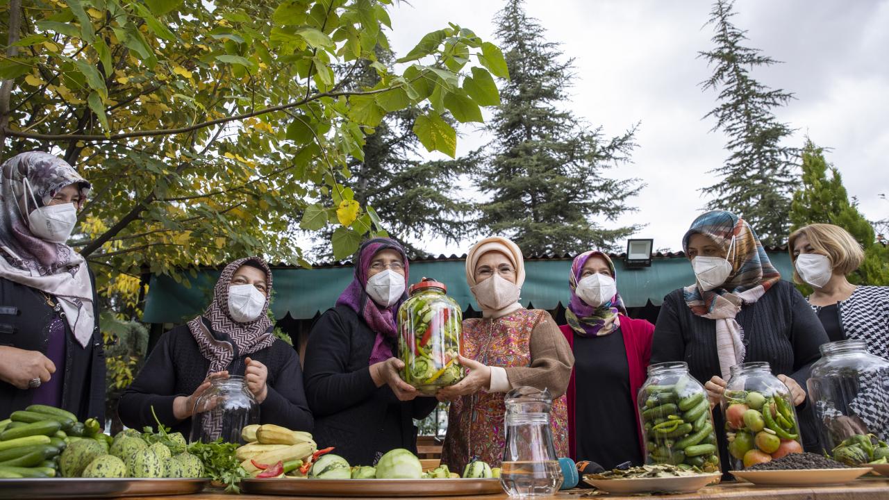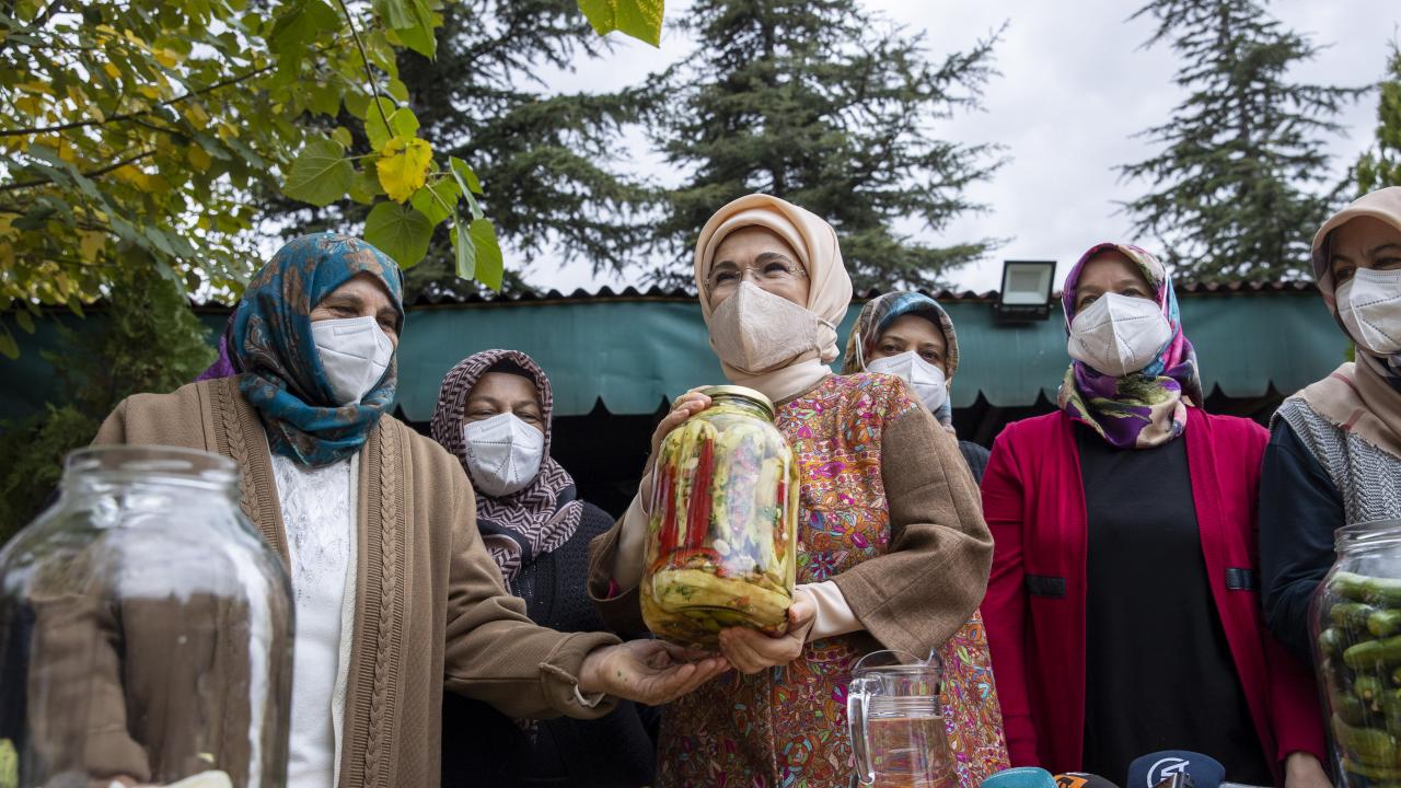 Kadınlar, Emine Erdoğan`a, yaptıkları turşuları sosyal medya üzerinden de sattıklarını ve gelir elde ettiklerini söyledi.