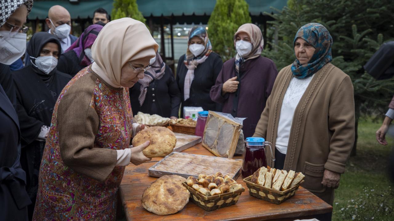 Daha sonra Çubuklu kadınların yöresel ürünlerinin tanıtıldığı stantları da gezen Emine Erdoğan, buraya özgü yemeklerin tadına baktı.