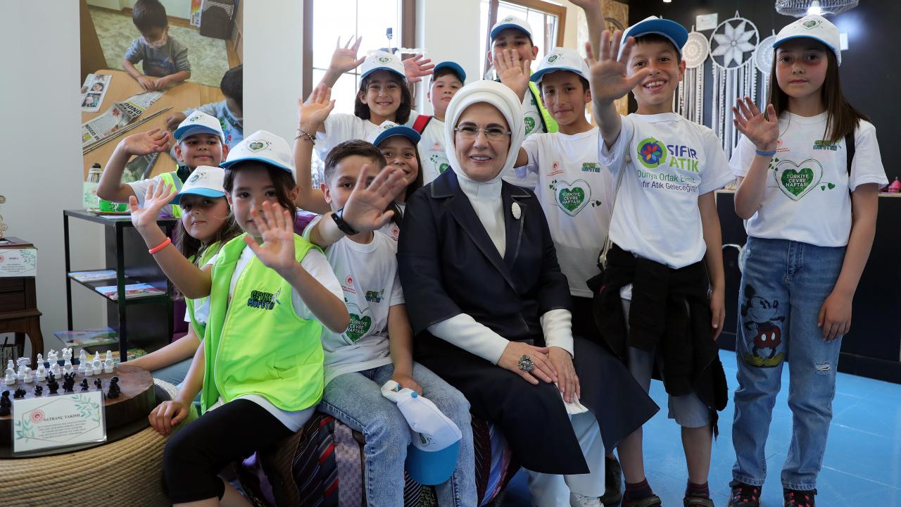 Kızılcahamam ziyaretinde büyük sürprizler yaşadığını söyleyen Emine Erdoğan, "Gençlerin ve çocukların bilinçlenmesi beni çok duygulandırdı. Çevreye verdikleri önemi ve hizmeti gördükçe ümidim daha da arttı, geleceğe dair. Çünkü gençlere bırakıyoruz Sıfır Atık hizmetini, onlar devam ettirecekler. Dolayısıyla beni umutlandırdılar, kendilerine çok teşekkür ediyorum" dedi.