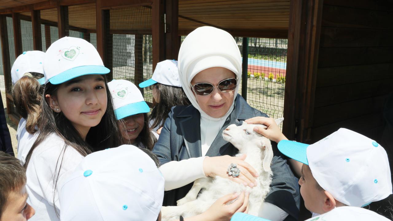 Ziyaretleri kapsamında, Millet Bahçesi`ne gelen Emine Erdoğan, çocukların alkışlarıyla karşılandı. Çocuklarla mini hayvanat bahçesini gezen Erdoğan, buradaki midilliyi ve oğlakları sevdi, bir oğlağı kucağına aldı.