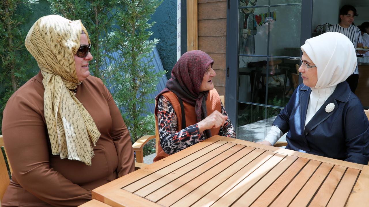 Emine Erdoğan, Atık Kafesi`nde, kağıt ve atık toplayıcılığıyla geçimini sağlayan 68 yaşındaki Kezban Aydın ile de bir araya geldi.