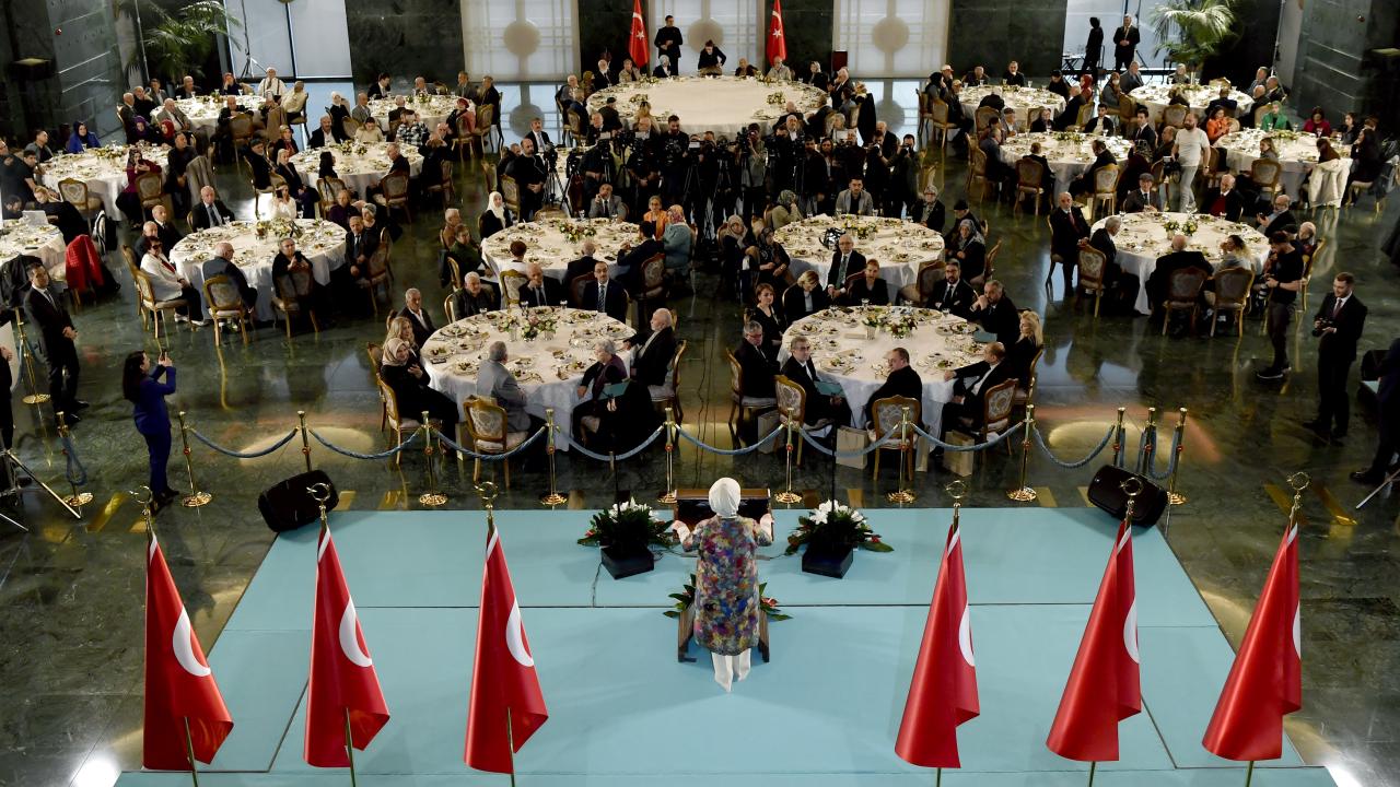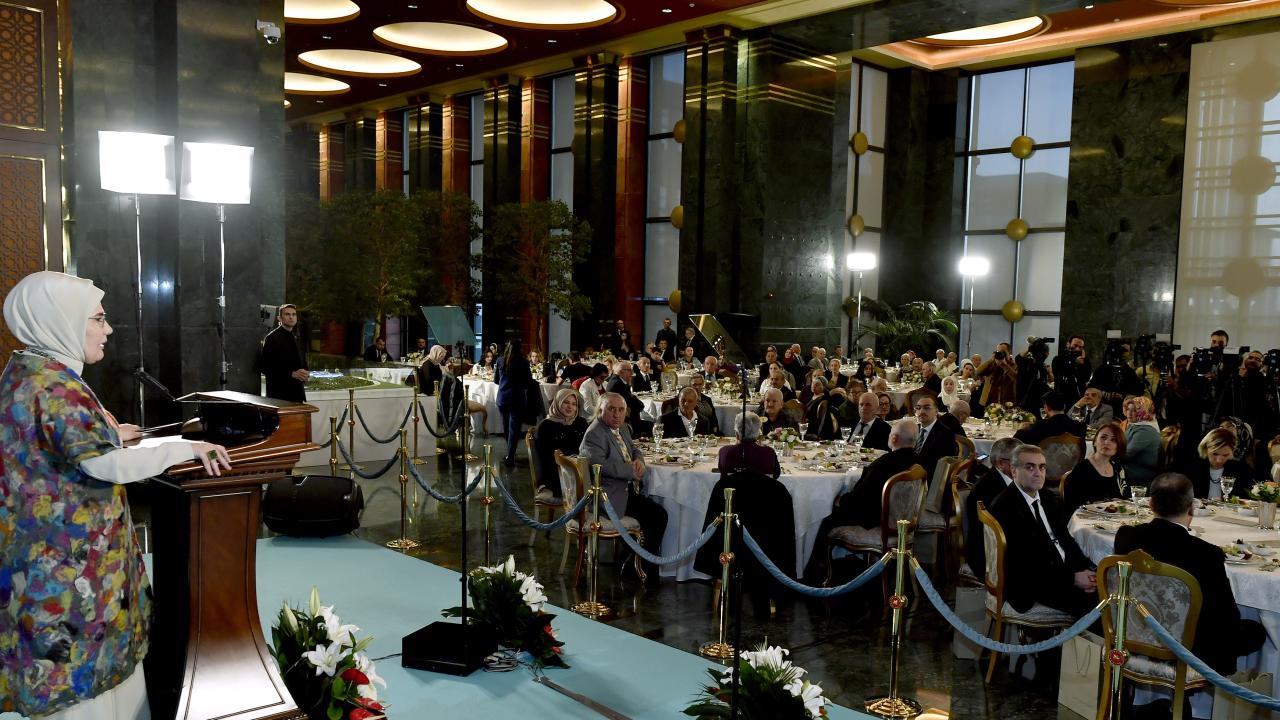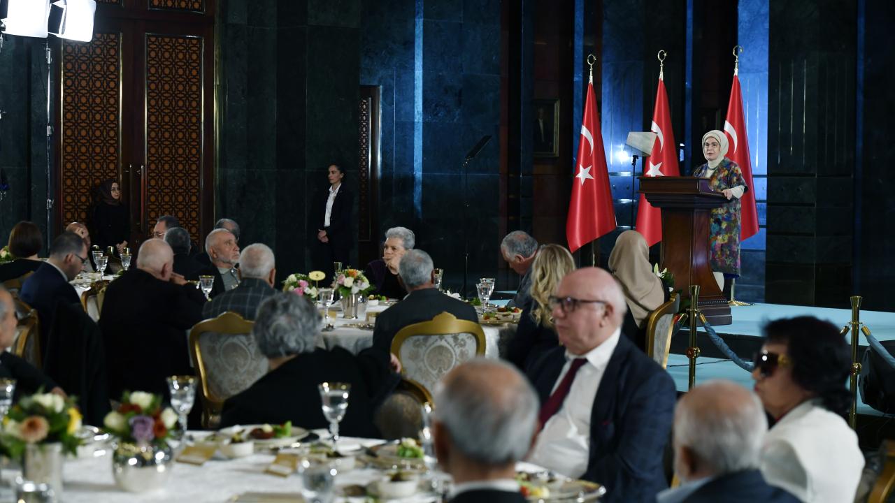 Cumhurbaşkanı Recep Tayyip Erdoğan'ın eşi Emine Erdoğan, Yaşlılara Saygı Haftası dolayısıyla huzurevi sakinleriyle Cumhurbaşkanlığı Külliyesi'nde düzenlenen iftarda bir araya geldi.