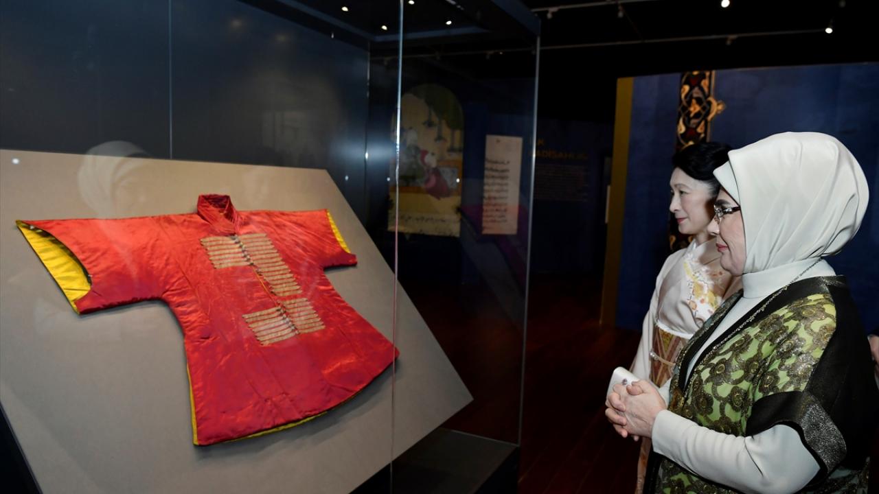 Akishino sergide sunulan Fatih Sultan Mehmet`in kaftan, kılıç, zırh gömlek gibi kişisel eşyaları ve o dönemin tarihine ışık tutacak çok sayıda esere hayranlığını dile getirdi.
