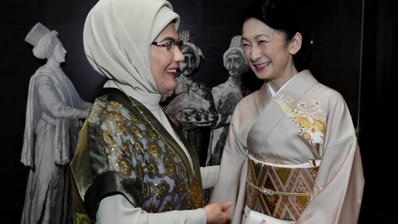 Cumhurbaşkanı Recep Tayyip Erdoğan'ın eşi Emine Erdoğan, Japon-Türkiye ilişkilerinin 100. yılı dolayısıyla resmi ziyaret için Türkiye'de bulunan Japonya Veliaht Prensi'nin eşi Prenses Akishino ile bir araya geldi.