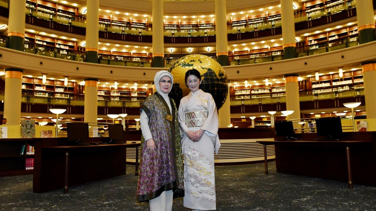 Cumhurbaşkanı Erdoğan`ın eşi Emine Erdoğan, Japonya Veliaht Prensesi Akishino ile Cumhurbaşkanlığı Millet Kütüphanesi`ni ziyaret etti. Emine Erdoğan, Veliaht Prenses Akishino`yu kütüphanenin girişinde samimi bir şekilde karşıladı.