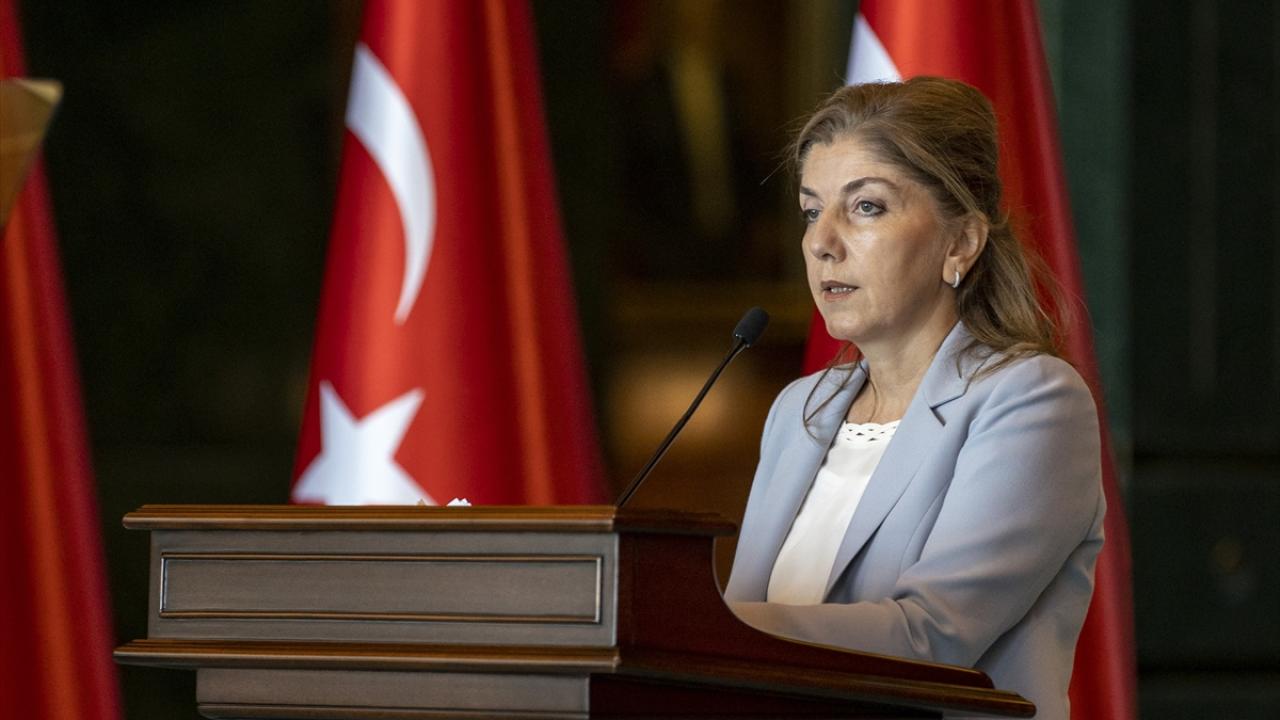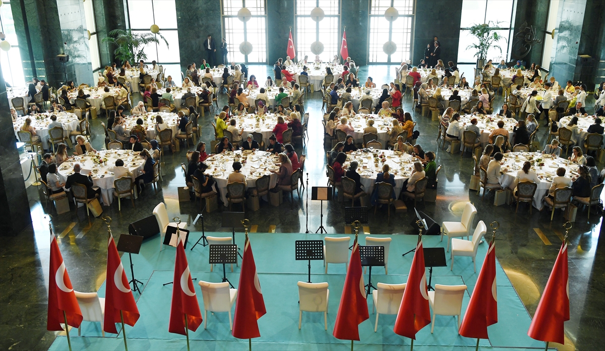 Cumhurbaşkanlığı Külliyesi`nde gerçekleştirilen yemek öncesi Dışişleri Bakanı Mevlüt Çavuşoğlu`nun eşi Hülya Çavuşoğlu, teşekkür konuşması yaptı.