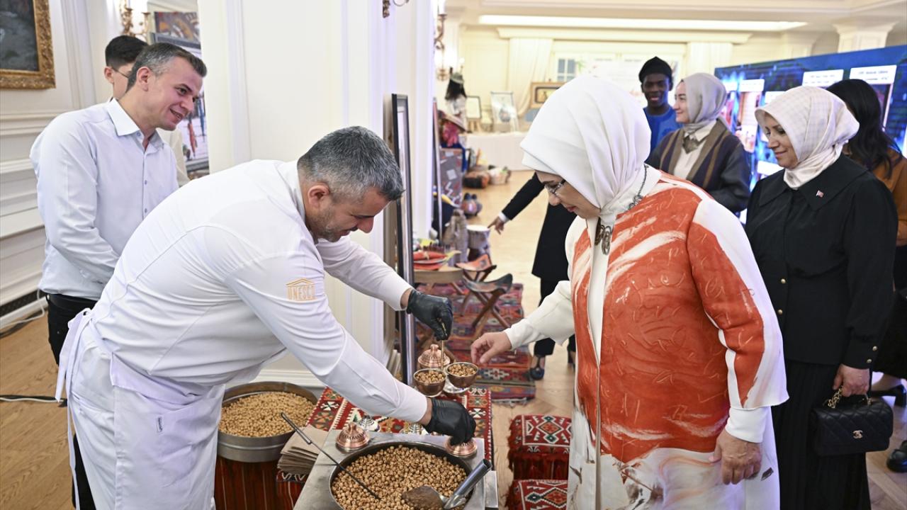 Sergide Emine Erdoğan`a leblebi, geleneksel Türk lokumları ve kumda pişirilen Türk kahvesi de ikram edildi.