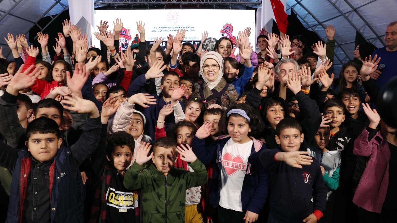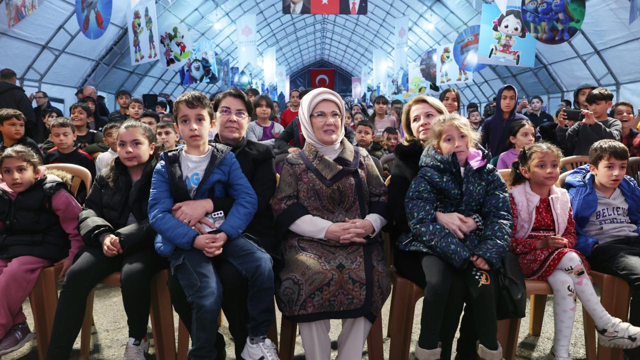 Emine Erdoğan çocuklara, "Sizi çok seviyorum, iyi ki varsınız. Sizin için buradayım" dedi.