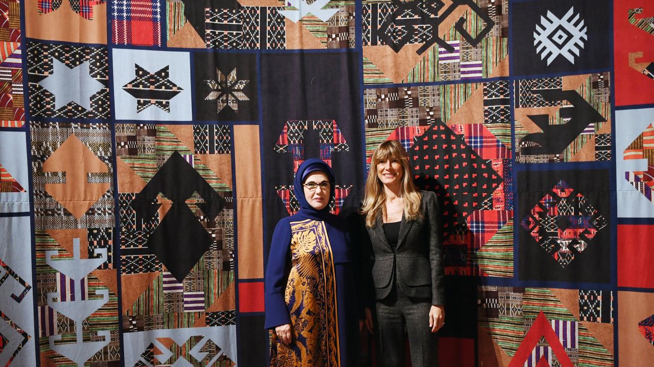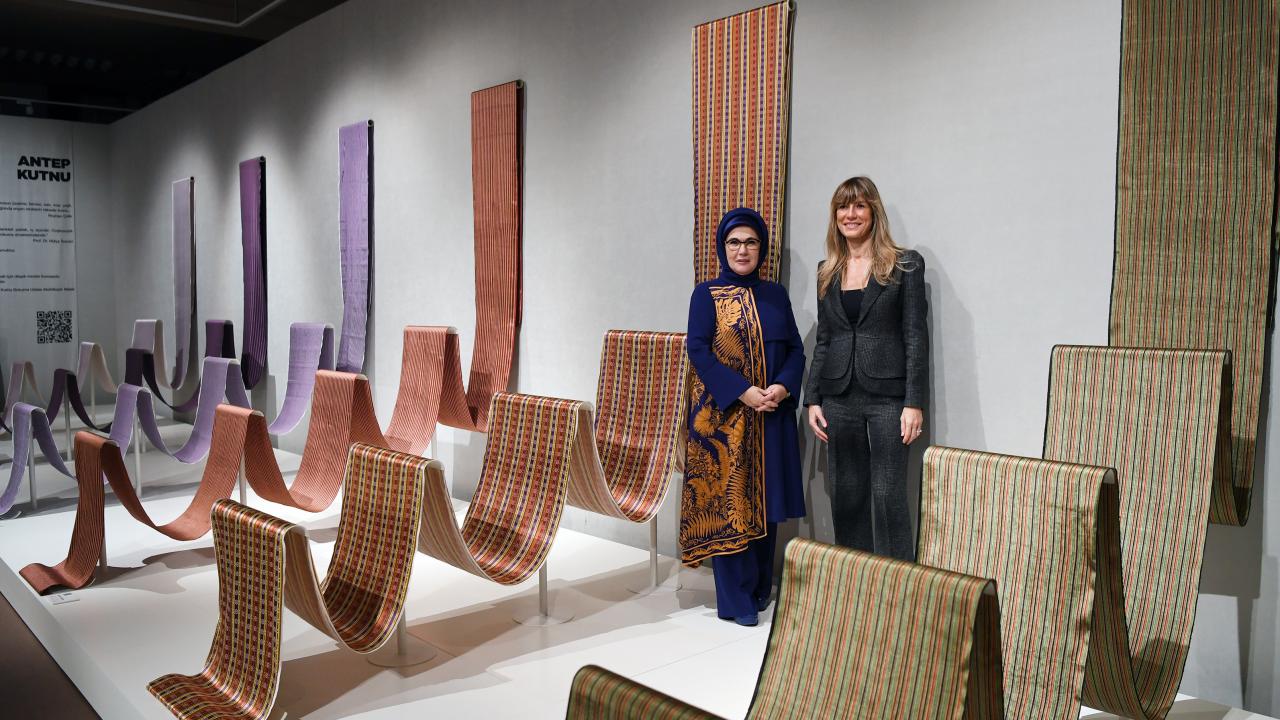 Emine Erdoğan ve Fernandez, sergi salonuna gelerek, Türkiye Dokuma Atlası Sergisi`ni ziyaret etti.