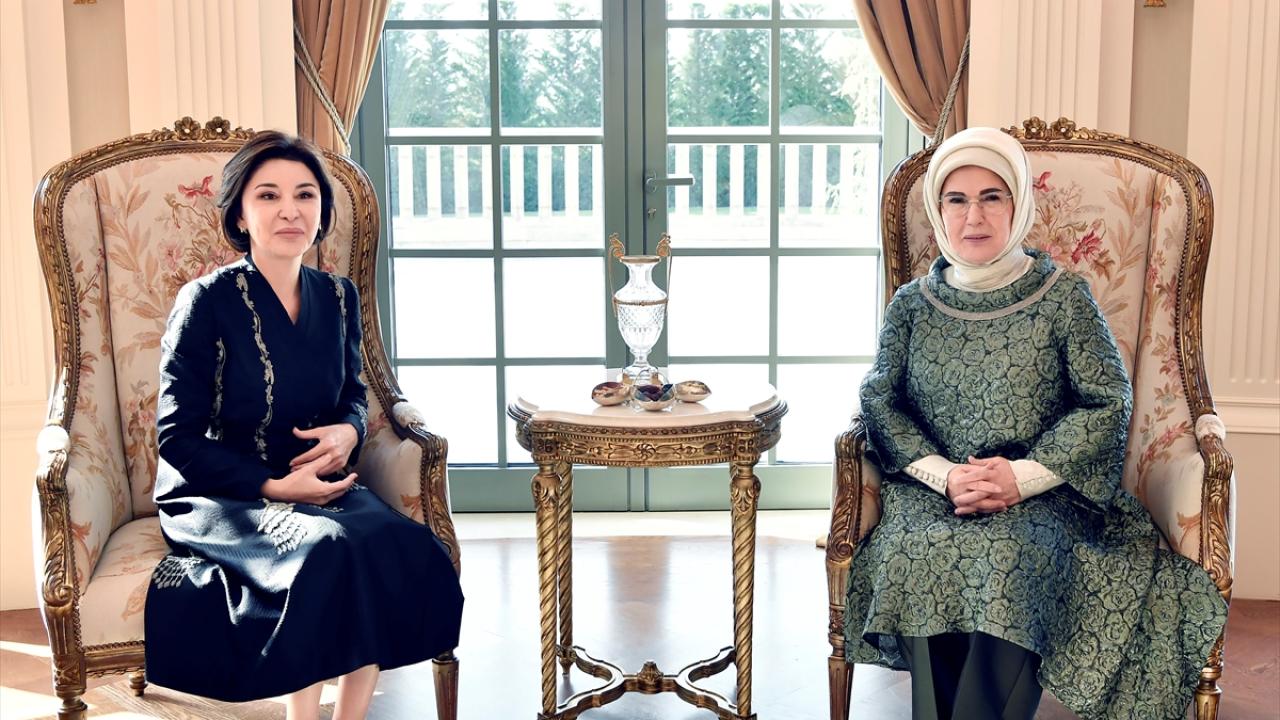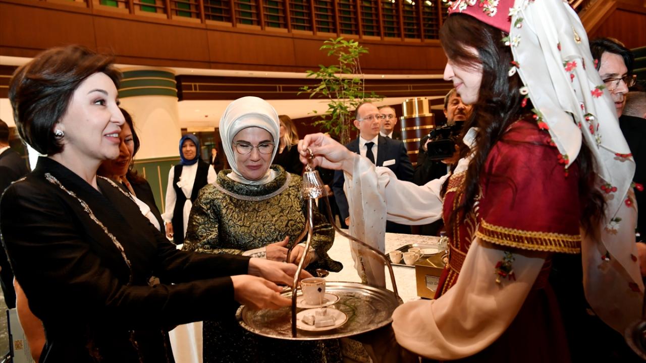 Cumhurbaşkanı Recep Tayyip Erdoğan'ın eşi Emine Erdoğan, Türkiye'ye resmi ziyarette bulunan Özbekistan Cumhurbaşkanı Şevket Mirziyoyev'in eşi Ziroat Mirziyoyeva'yı ağırladı. Olgunlaşma Enstitüleri tarafından hazırlanan el emeği ürünlerin yer aldığı `Köklerden Gelen Miras` sergisini ziyaret eden Emine Erdoğan ve Mirziyoyeva'ya, sergi girişinde Türk kahvesi ikram edildi.