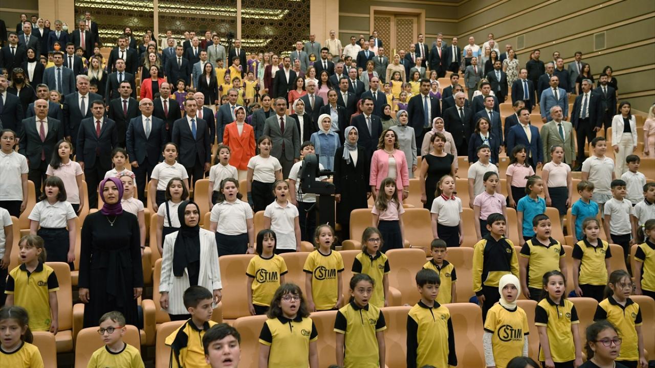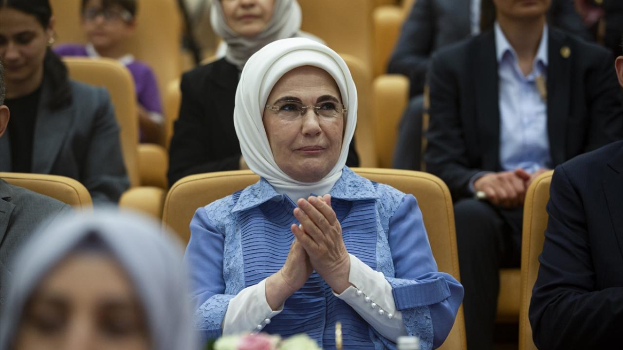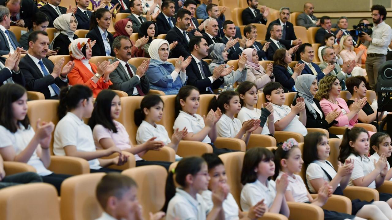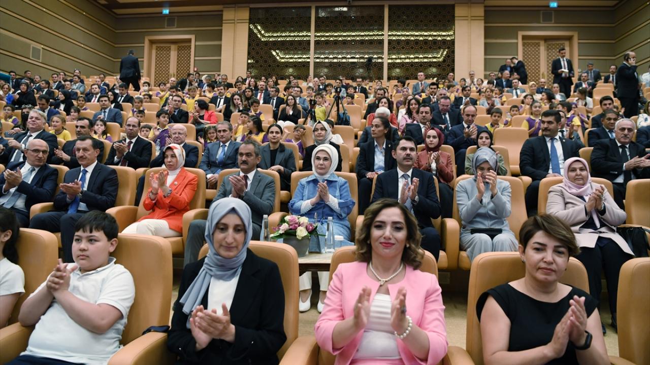 Cumhurbaşkanı Recep Tayyip Erdoğan'ın eşi Emine Erdoğan, Cumhurbaşkanlığı Külliyesi'nde düzenlenen "Çevre Dostu 1000 Okul Projesi Ödül Töreni'ne katıldı.