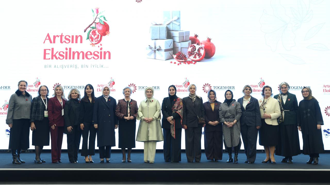 Cumhurbaşkanı Recep Tayyip Erdoğan'ın eşi Emine Erdoğan, Toplumsal Gelişim Merkezi Eğitim ve Sosyal Dayanışma Derneğinin (TOGEM-DER) "Artsın Eksilmesin Dönüşüm Pazarı"nın açılışını gerçekleştirdi.