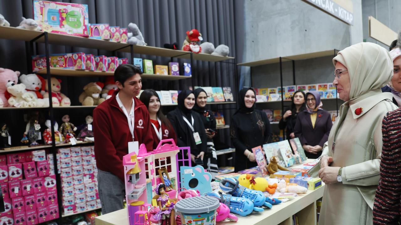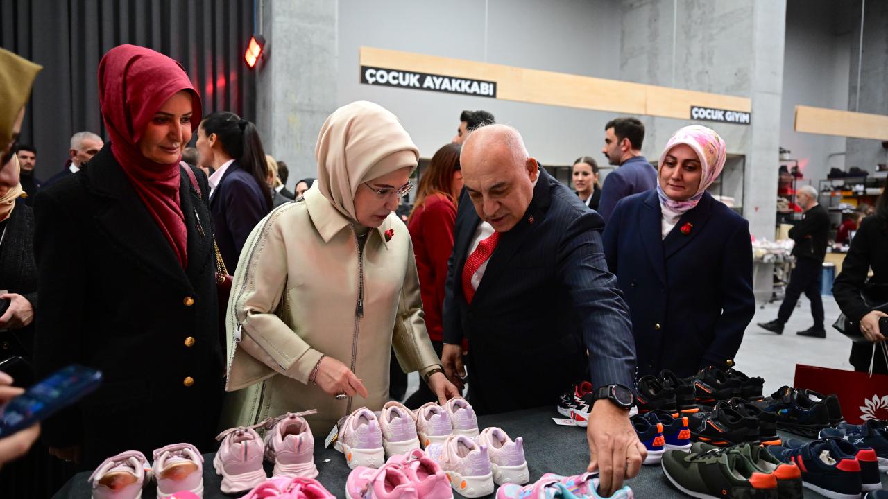 Açılış programının ardından Emine Erdoğan, mobilyadan giyime, ayakkabıdan aksesuara, ev eşyasından elektronik ürünlere, markalar tarafından bağışlanan yeni ürünlerin satışa sunulduğu pazarda stantları gezdi.